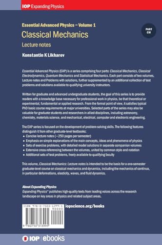 Essential Advanced Physics is a series comprising four parts: Classical Mechanics, Classical Electrodynamics, Quantum Mechanics and Statistical Mechanics. Each part consists of two volumes, Lecture Notes and Problems with Solutions, further supplemented by an additional collection of test problems and solutions available to qualifying university instructors. This volume, Classical Mechanics: Lecture Notes, is intended to be the basis for a one-semester graduate-level course on classical mechanics and dynamics, including the mechanics of continua, in particular deformations, elasticity, waves, and fluid dynamics.
