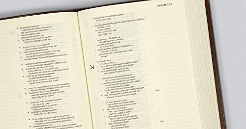 The ESV Single Column Journaling Bible is a complete redesign of the original Journaling Bible. The Bible text is laid out in an easy-to-follow, single-column format. Ruled lines in the extra-wide margins enable users to more easily align their notes with specific verses. With high-quality Bible paper and cover materials, the Single Column Journaling Bible is a durable edition for anyone who wants to capture notes, prayers, or personal reflections in their Bible. Features: Size: 6.25″ x 8″ 7.5 pt Lexicon type 1,360 pages Black letter text Single-column, paragraph format 2″ ruled margins for writing Cream-colored Bible paper Ribbon marker Smyth-sewn binding Packaging: O-wrap, clamshell box, or permanent slipcase