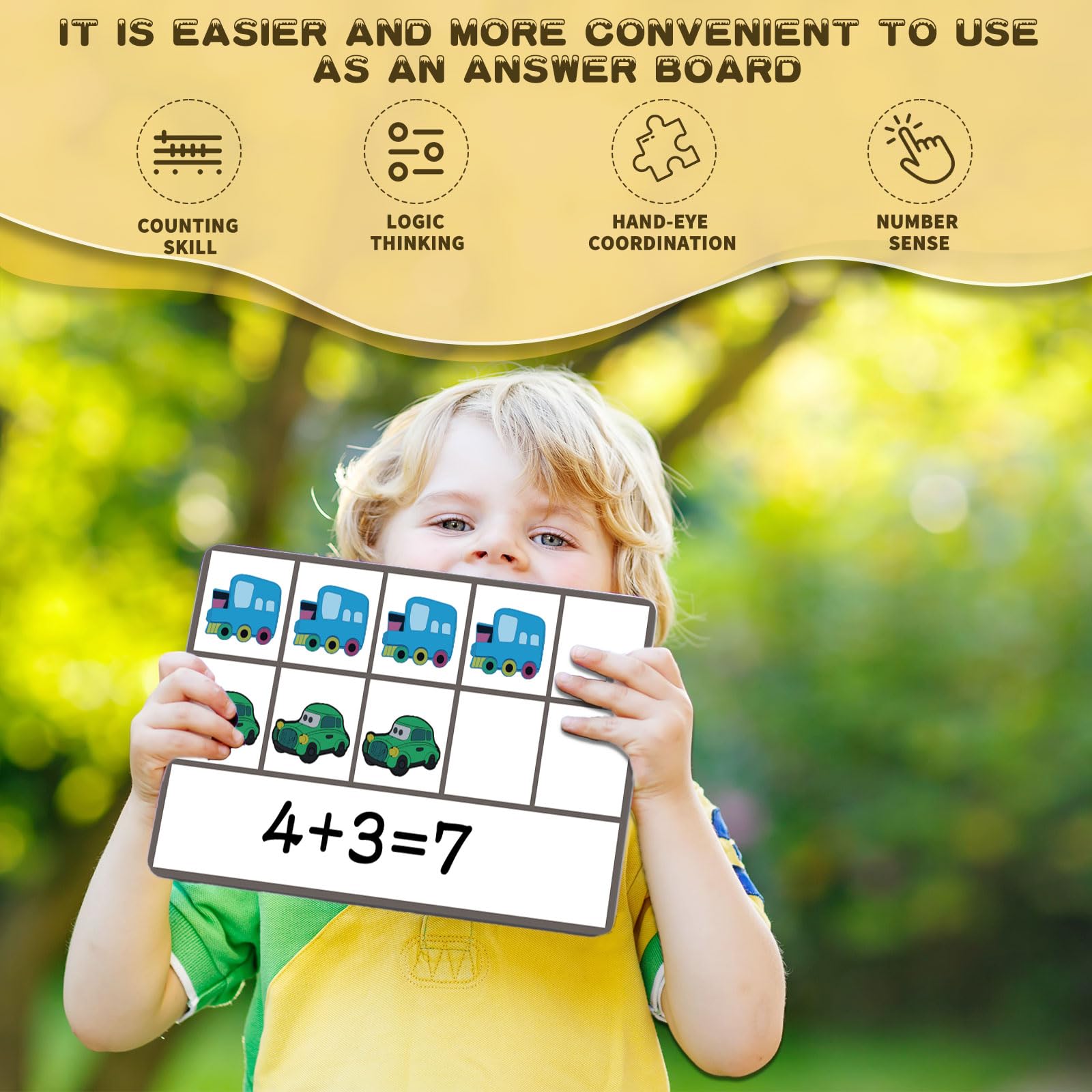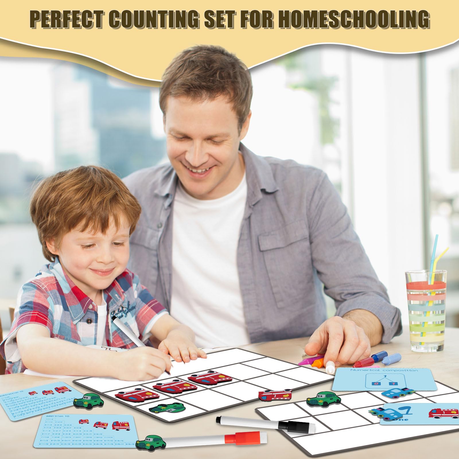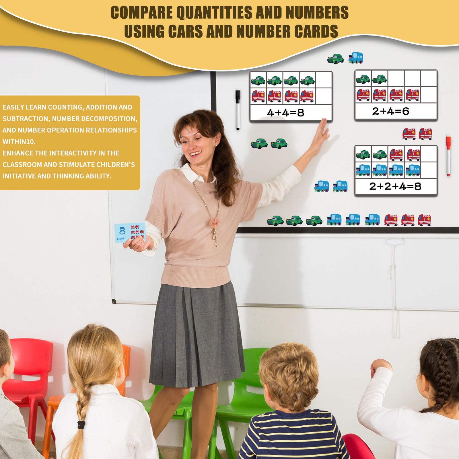 - High Quality and Durable: The math manipulatives are made with thick, durable, and safe materials. Reusable magnetic ten-frame set will not release any harmful substances, The ten frames have strong magnets on the back, and the car counters also have thick, rounded magnets, making the set very stable. The blank space on the back of the ten frames provides a convenient area for writing equations and numbers.