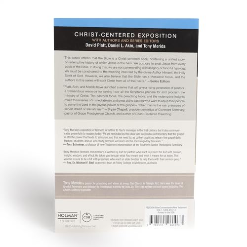 Exalting Jesus in Romans is part of the Christ-Centered Exposition Commentary series. Edited by David Platt, Daniel L. Akin, and Tony Merida, this commentary series, to include 47 volumes when complete, takes a Christ-centered approach to expositing each book of the Bible. Rather than a verse-by-verse approach, the authors have crafted chapters that explain and apply key passages in their assigned Bible books. Readers will learn to see Christ in all aspects of Scripture, and they will be encouraged by the devotional nature of each exposition presented as sermons and divided into chapters that conclude with a “Reflect & Discuss” section, making this series ideal for small group study, personal devotion, and even sermon preparation. It’s not academic but rather presents an easy reading, practical, and friendly commentary. The CCE series will include 47 volumes when complete. The author of Exalting Jesus in Romans is Tony Merida.
