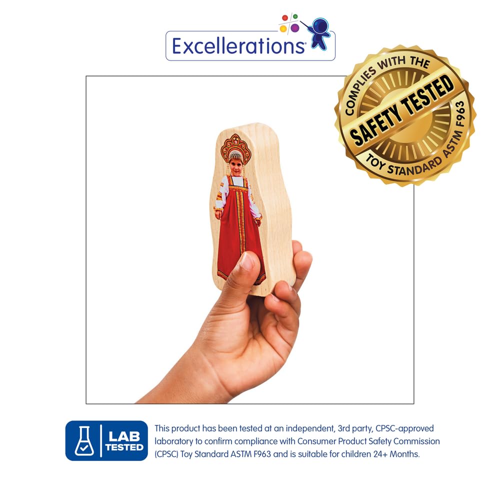 The product type is Excellerations Photo Block Multicultural Play People Set of 18 (Item # OURPEEPS). The product is made in China. It is manufactured by Discount School Supply. Solid beech wood blocks.