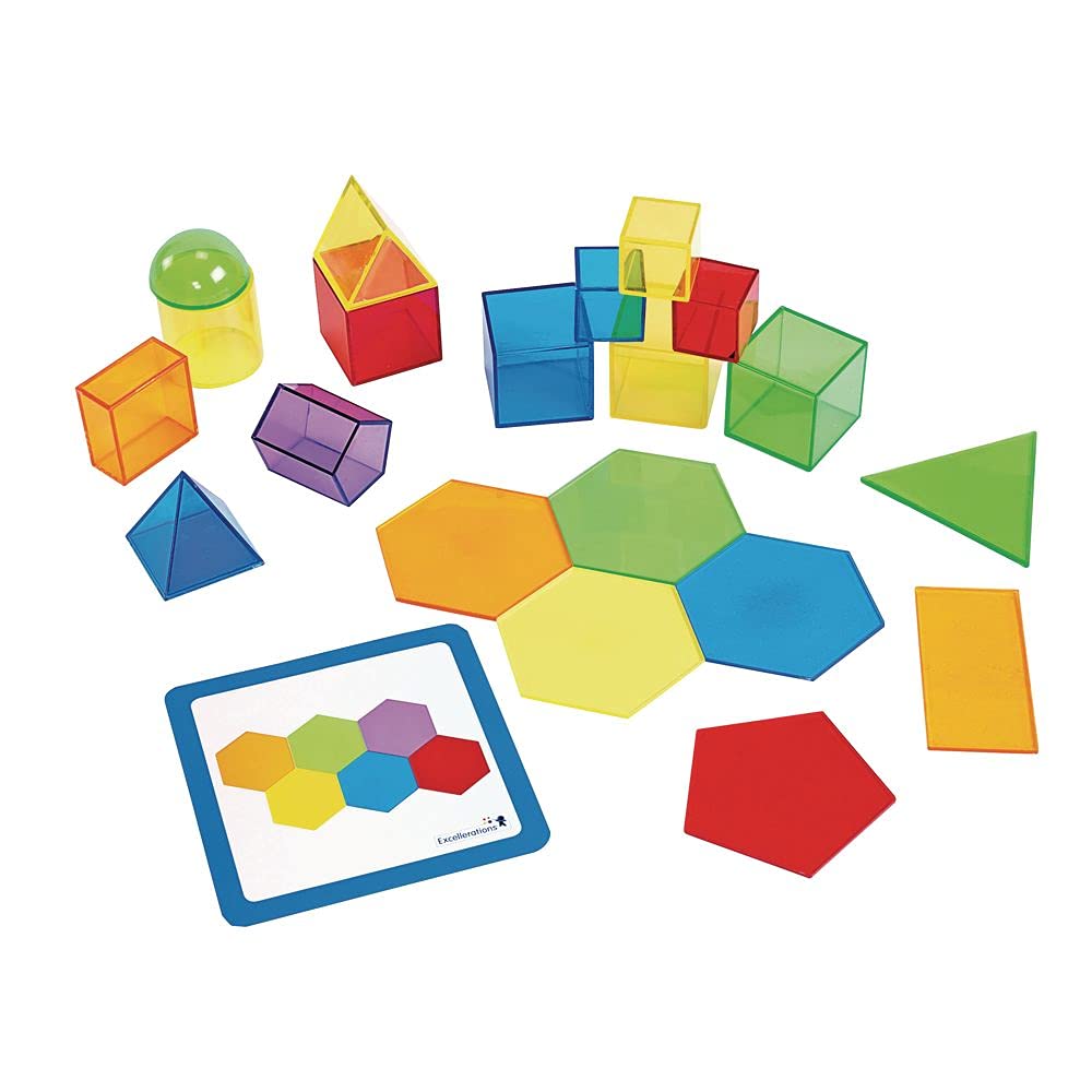 Excellerations STEM Translucent Shapes Set with Activity Cards 71 Pieces, Prek Math, Light Table Math Tools, Patterning, Sorting, Colors & Shapes