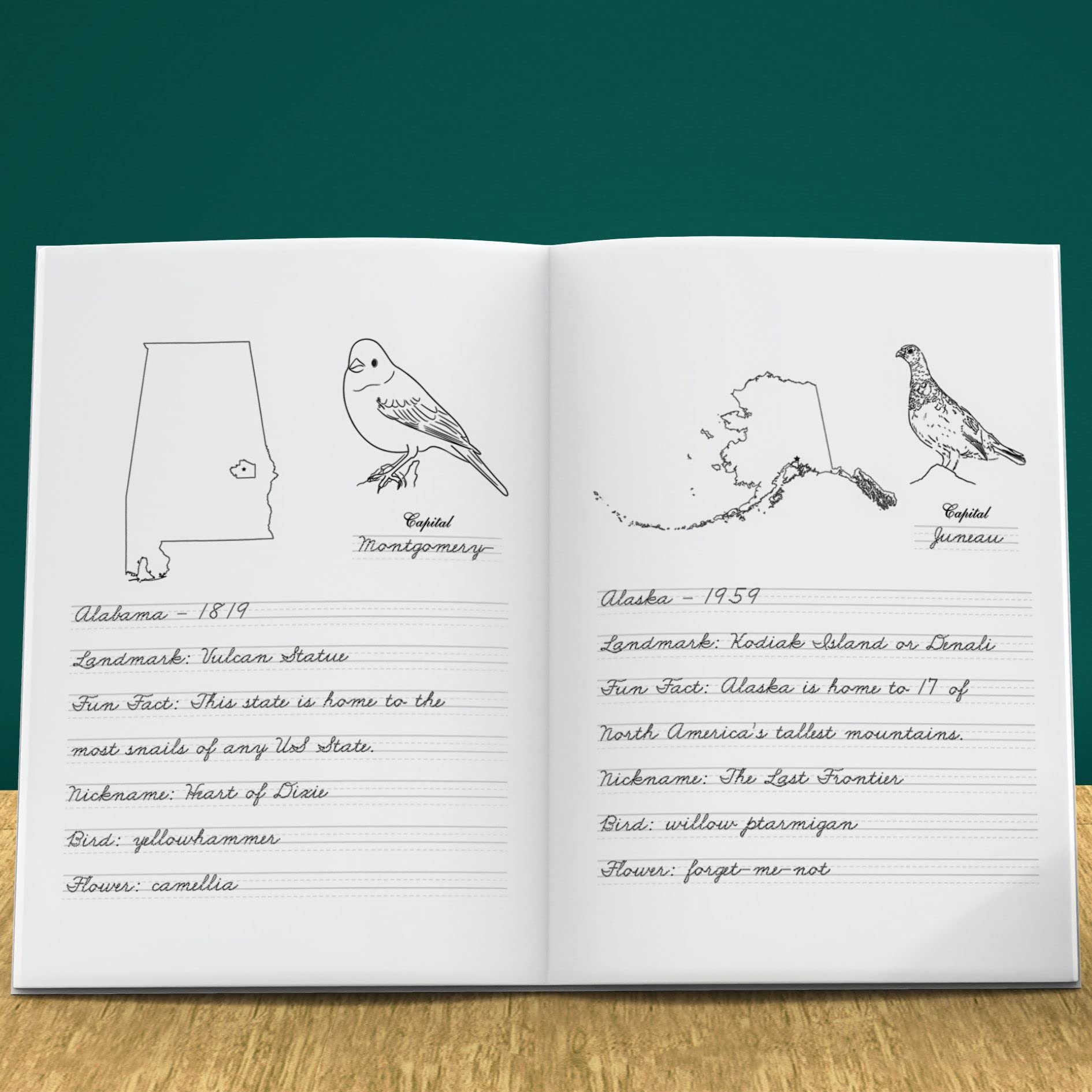Exploration of All 50 States Cursive Workbook for Kids 8-12: A Handwriting Practice Book (Graceful By Design's Cursive Workbooks)