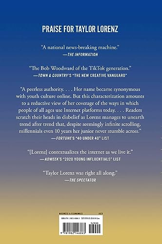 NATIONAL BESTSELLER Acclaimed Washington Post reporter Taylor Lorenz presents a groundbreaking social history of the internet, revealing how online influence and the creators who amass it have reshaped our world, online and off–“terrific,” as the New York Times calls it, “Lorenz…is a knowledgeable, opinionated guide to the ways internet fame has become fame, full stop.” For over a decade, Taylor Lorenz has been the authority on internet culture, documenting its far-reaching effects on all corners of our lives. Her reporting is serious yet entertaining and illuminates deep truths about ourselves and the lives we create online. In her debut book, Extremely Online, she reveals how online influence came to upend the world, demolishing traditional barriers and creating whole new sectors of the economy. Lorenz shows this phenomenon to be one of the most disruptive changes in modern capitalism. By tracing how the internet has changed what we want and how we go about getting it, Lorenz unearths how social platforms’ power users radically altered our expectations of content, connection, purchasing, and power. In this “deeply reported, behind-the-scenes chronicle of how everyday people built careers and empires from their sheer talent and algorithmic luck” (Sarah Frier, author of No Filter), Lorenz documents how moms who started blogging were among the first to monetize their personal brands online, how bored teens who began posting selfie videos reinvented fame as we know it, and how young creators on TikTok are leveraging opportunities to opt out of the traditional career pipeline. It’s the real social history of the internet. Emerging seemingly out of nowhere, these shifts in how we use the internet seem easy to dismiss as fads. However, these social and economic transformations have resulted in a digital dynamic so unappreciated and insurgent that it ultimately created new approaches to work, entertainment, fame, and ambition in the 21st century. “Extremely Online aims to tell a sociological story, not a psychological one, and in its breadth it demonstrates a new cultural logic emerging out of 21st-century media chaos” (The New York Times). Lorenz reveals the inside, untold story of what we have done to the internet, and what it has done to us.