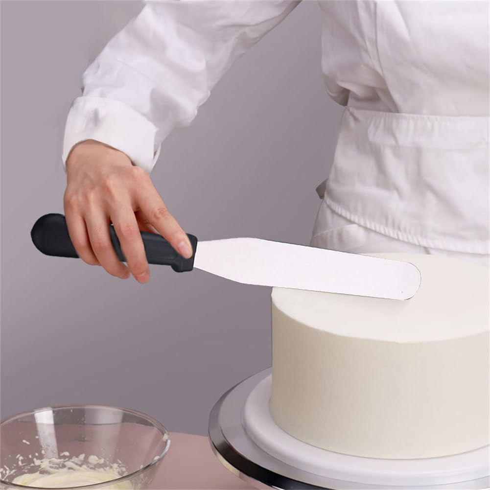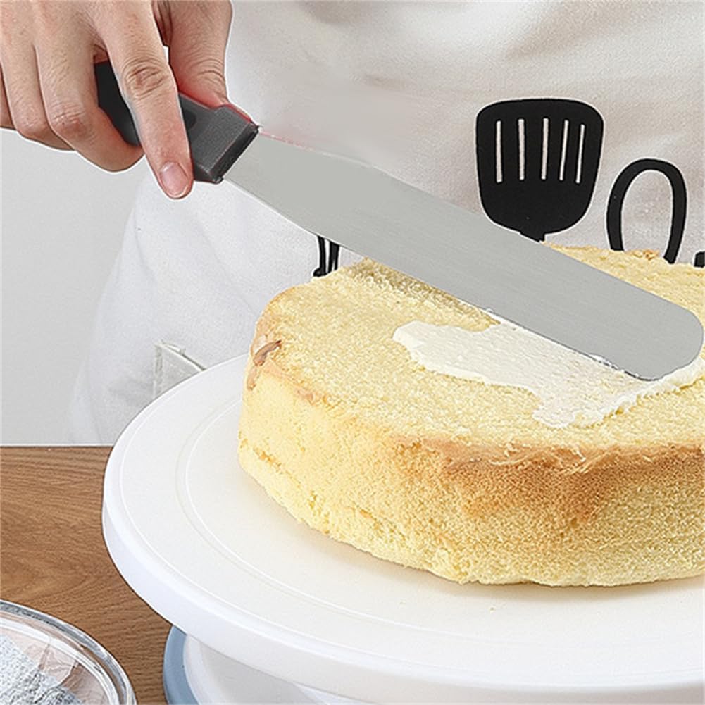 Decorating and icing a cake with a butter knife can get messy and makes the task too hard. Well, with this cake decorating essential, this icing spatula provides exceptional control to let you ice and decorate the cream precisely. The materials are all food-grade and are safe to use in kitchens. Features a plastic handle that provides a comfortable grip even when wet. Keeping both the functionality and ease of usage, we designed the icing spatula to be dishwasher safe. The blade is pretty flexible and sturdy to effortlessly glide over the cake and pick cakes, pizzas, and pastries comfortably. The handle feels good when used, and the blade gets the work done without hassle. Food-Grade Materials This icing spatula consists of food-safe materials that make it safe for culinary tasks. The edges are smooth to prevent unwanted cuts on your skin. Its thoughtful construction accommodates the knuckles to evenly spread the frosting over the cake. Straight Long Blade Be it layering on the cake or spreading on a crumb layer, and this straight blade spatula makes it all easy for you. Its long straight blade prevents the icing from getting on your hands, giving you more room to move flexibly. Apart from icing and frosting, you can use this spatula to pick cakes, pizzas, and pastries. Resilient Construction No more butter knives to spread icing on the cake. With the flexible design of our icing spatula, you can get more control and optimal grip when you ice and decorate the cake. The optimal design fits all your needs, from decorating a large cake to a tiny cupcake.