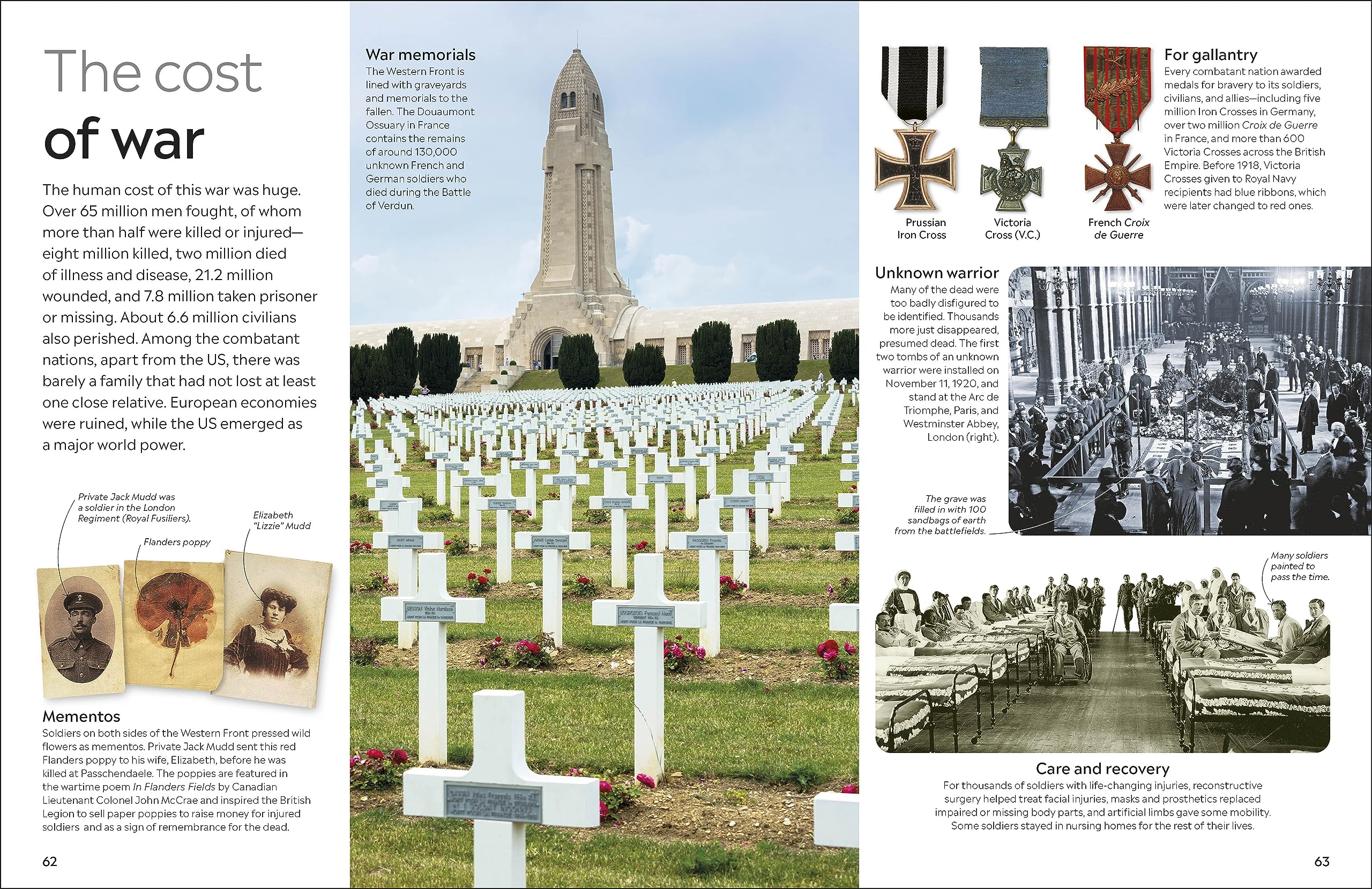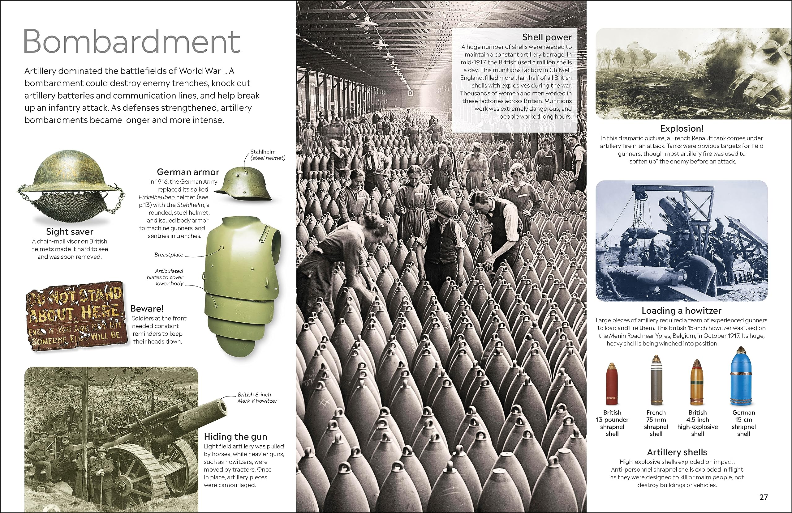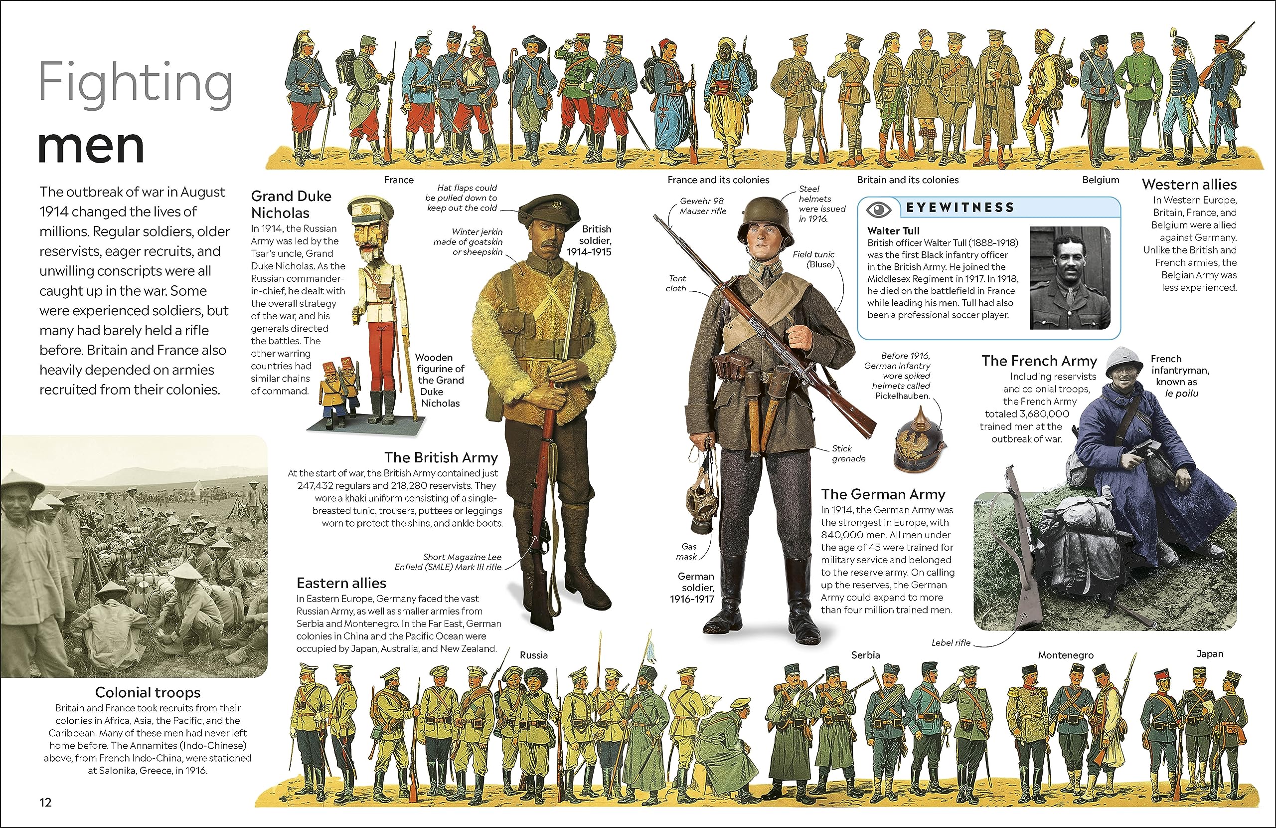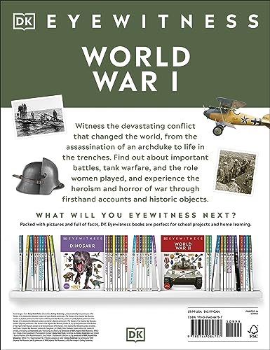 Packed with striking photography, Eyewitness World War I explores one of the most brutal conflicts of the 20th century. Become an eyewitness to the first conflict fought on a global scale in this picture-led reference guide that will take you on a visual tour of World War One. Made in collaboration with The Imperial War Museum, children will be mesmerized by learning about the world-changing events that led to the start of the conflict. This beautifully illustrated guide for kids aged 9+ gives an insight into life in the muddy trenches and what it was like to be a soldier, along with a broader picture of the events that took place causing the war to start. Using striking full-color photographs and illustrations of warfare, weaponry, vehicles, maps, and secret documents, this is an eyewitness view of the conflict dubbed the “the war to end all wars”. Throughout the pages of this newly-revised book on the First World War, you can expect to find: – A fresh new look; new photographs, updated information, and a new “eyewitness” feature. – Amazing facts, updated diagrams, statistics, and timelines. – Brand new eyewitness accounts from experts in the field. Eyewitness World War I introduces the ultimate guide to the first global conflict, with more than 250 photographs illustrating the people, places and stories of the war. Children can learn all about military vehicles and tank warfare, the first ever gas attacks used during a war and Armistice and peace after four years of fighting. This all-encompassing guide to World War One is a must-have for curious children aged 9+ with a thirst for learning, as well as teachers, parents and librarians. So, what’s new? Part of DK’s best-selling Eyewitness series, this popular title has been reinvigorated for the next generation of information-seekers and stay-at-home explorers, with a fresh new look, up to 20 percent new images, including photography and updated diagrams, updated information, and a new “eyewitness” feature with fascinating first-hand accounts from experts in the field. Explore the series! Globally, the Eyewitness series has sold more than 50 million copies over 30 years. Travel through the solar system with Eyewitness Space, learn the incredible systems that keep your body functioning with Eyewitness Human Body, or take a trip aboard the most famous ship in history with Eyewitness Titanic.