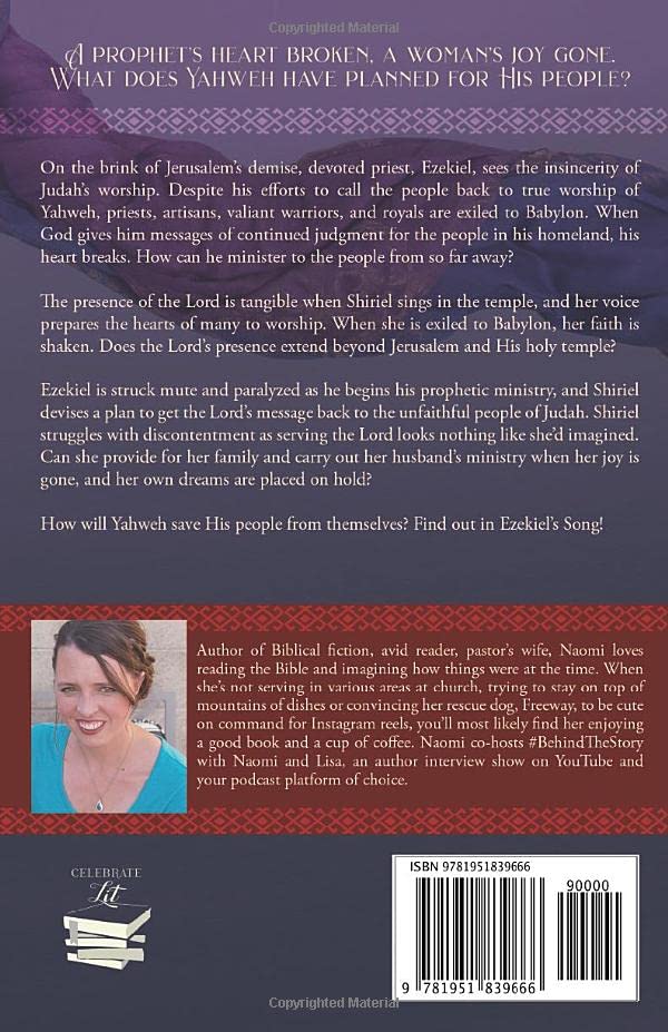 A prophet’s heart broken, a woman’s joy gone. What does Yahweh have planned for His people? On the brink of Jerusalem’s demise, devoted priest, Ezekiel, sees the insincerity of Judah’s worship. Despite his efforts to call the people back to true worship of Yahweh, priests, artisans, valiant warriors, and royals are exiled to Babylon. When God gives him messages of continued judgment for the people in his homeland, his heart breaks. How can he minister to the people from so far away? The presence of the Lord is tangible when Shiriel sings in the temple, and her voice prepares the hearts of many to worship. When she is exiled to Babylon, her faith is shaken. Does the Lord’s presence extend beyond Jerusalem and His holy temple? Ezekiel is struck mute and paralyzed as he begins his prophetic ministry, and Shiriel devises a plan to get the Lord’s message back to the unfaithful people of Judah. Shiriel struggles with discontentment as serving the Lord looks nothing like she’d imagined. Can she provide for her family and carry out her husband’s ministry when her joy is gone, and her own dreams are placed on hold? How will Yahweh save His people from themselves? Find out in Ezekiel’s Song!