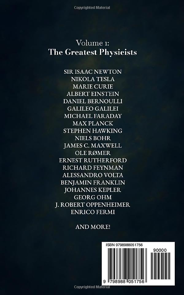 If you’re curious about the brilliant minds who’ve shaped our understanding of the universe, “The Greatest Physicists” is a book you’ll really enjoy. It dives into the lives of some incredible people like Isaac Newton, whose laws of motion and gravity set the stage for classical physics, and Albert Einstein, who completely changed how we think about space and time with his theory of relativity. You’ll also read about Marie Curie, a pioneer in radioactivity and the first woman to win a Nobel Prize. What makes this book special is that it doesn’t just list their achievements–it brings these scientists to life by exploring their personal stories, challenges, and moments of inspiration. You’ll discover how James Clerk Maxwell developed the theory of electromagnetic waves, how Niels Bohr introduced the quantum model of the atom, and how Nikola Tesla’s inventions brought electricity into our everyday lives. Whether you’re an aspiring scientist, a seasoned physicist, or just someone who’s curious like me by the wonders of the universe, “The Greatest Physicists” offers an engaging and accessible look at these remarkable individuals. It’s not just about physics; it’s about the human curiosity and determination that drove these pioneers to reshape our world. If you’re up for an inspiring read that combines science with compelling life stories, this book is definitely worth picking up. Physicists featured: SIR ISAAC NEWTON NIKOLA TESLA MARIE CURIE ALBERT EINSTEIN DANIEL BERNOULLI GALILEO GALILEI MICHAEL FARADAY MAX PLANCK STEPHEN HAWKING NIELS BOHR JAMES C. MAXWELL OLE ROMER ERNEST RUTHERFORD RICHARD FEYNMAN ALESSANDRO VOLTA BENJAMIN FRANKLIN ARCHIMEDES HEINRICH HERTZ JOHANNES KEPLER GEORG OHM J. ROBERT OPPENHEIMER ENRICO FERMI SIR JAMES CHADWICK ANTOINE HENRI BECQUEREL J. J. THOMSON THOMAS EDISON