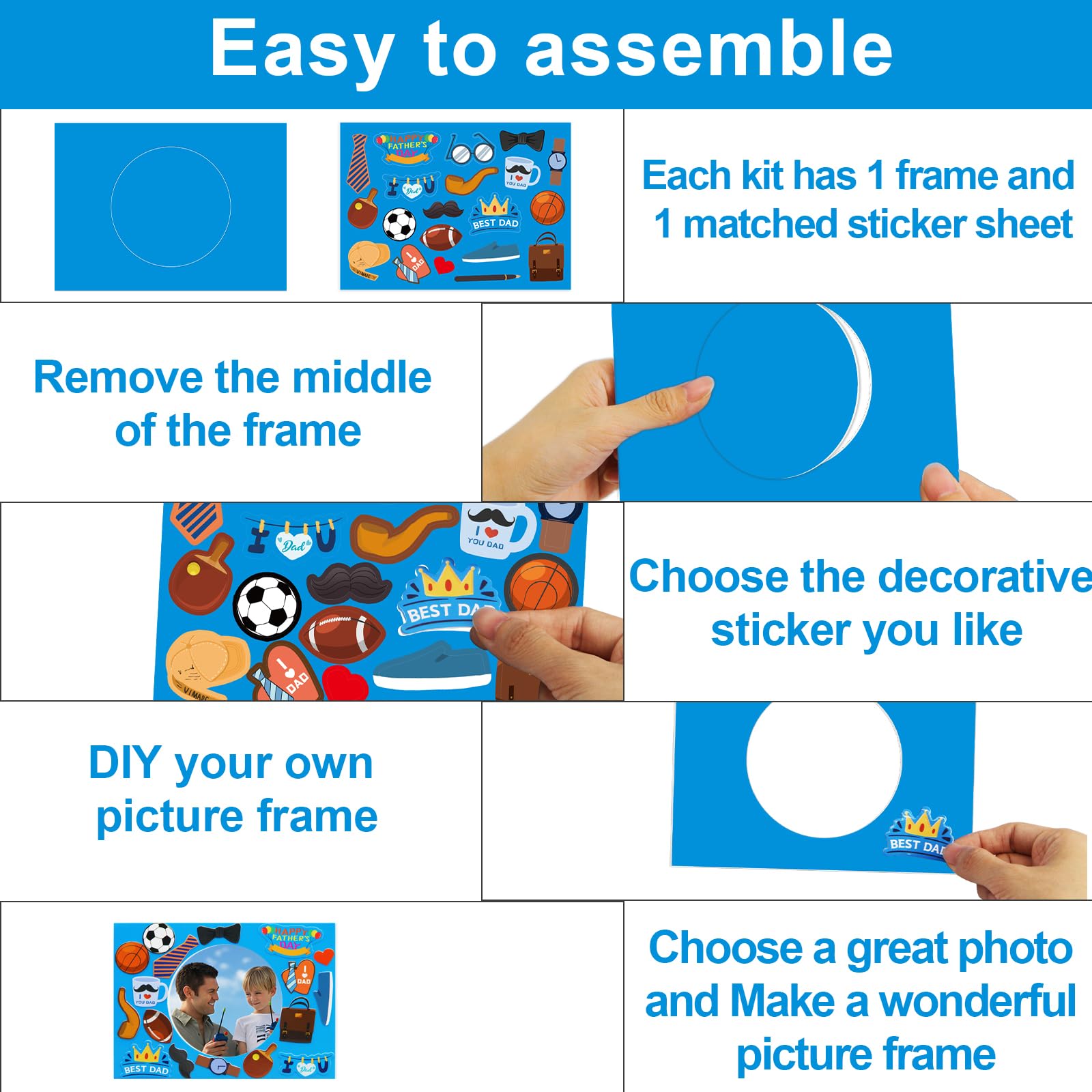 - Package Includes: 12 father’s day picture frame craft kits in 3 colors with matching sticker sheets