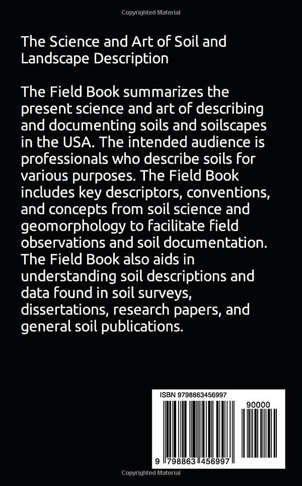 The Science and Art of Soil and Landscape Description This is Version 3; third printing (2021). The Field Book summarizes the present science and art of describing and documenting soils and soilscapes in the USA. The intended audience is professionals who describe soils for various purposes. The Field Book includes key descriptors, conventions, and concepts from soil science and geomorphology to facilitate field observations and soil documentation. The Field Book also aids in understanding soil descriptions and data found in soil surveys, dissertations, research papers, and general soil publications. Changes Version 3.0 (2012) includes new content, chapter updates, new terms, and addresses errors in earlier versions. Version 3.0 supersedes previous releases, which should be discarded. The third printing (2021) of the field book contains some minor changes from previous printings. The changes are mostly errata, such as misspelled words. Soil description methodology was developed by soil scientists throughout the entire course of the soil survey. The USDA published small instruction booklets for field parties, including soil descriptions, in 1902-1904, 1906, and 1914. The first USDA guide for soil horizon identification and description was released in 1937 (Bureau of Chemistry and Soils, 1937). Dr. Roy Simonson and others later summarized and revised this information (Soil Survey Staff, 1951; Soil Survey Staff, 1962). Brief “color-book” inserts with shorthand notation were released by the Soil Conservation Service (Spartanburg, SC, 1961; Western Technical Center, Portland, OR, 1974). Previous Field Books were released in 1998 (Schoeneberger et al.) and 2002 (Schoeneberger et al.). This is an updated Field Book version that summarizes current knowledge, includes updates since 2002, and reflects changes in source documents.