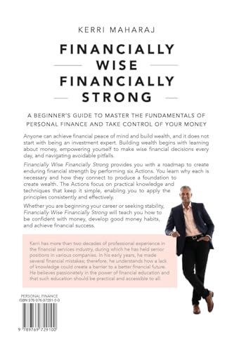 Anyone can achieve financial peace of mind and build wealth, and it does not start with being an investment expert. Building wealth begins with learning about money, empowering yourself to make wise financial decisions every day, and navigating the avoidable pitfalls. Financially Wise Financially Strong provides you with a roadmap to create enduring financial strength over a lifetime by performing six Actions. You learn why each is necessary and how they connect to produce a foundation to create wealth. The Actions focus on practical knowledge and techniques that keep it simple, enabling you to apply the principles consistently and effectively. Whether you are beginning your career or seeking stability, Financially Wise Financially Strong will teach you how to be confident with money, develop good money habits, and achieve financial success.
