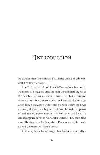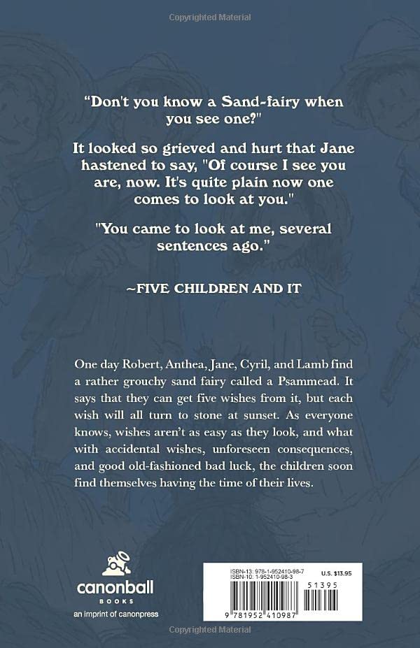 “Don’t you know a Sand-fairy when you see one?” It looked so grieved and hurt that Jane hastened to say, “Of course I see you are, now. It’s quite plain now one comes to look at you.” “You came to look at me, several sentences ago,” ~Five Children and It One day Robert, Anthea, Jane, Cyril, and Lamb find a rather grouchy sand fairy called a Psammead. It says that they can get five wishes from it, but each wish will all turn to stone at sunset. As everyone knows, wishes aren’t as easy as they look, and what with accidental wishes, unforeseen consequences, and good old-fashioned bad luck, the children soon find themselves having the time of their lives.