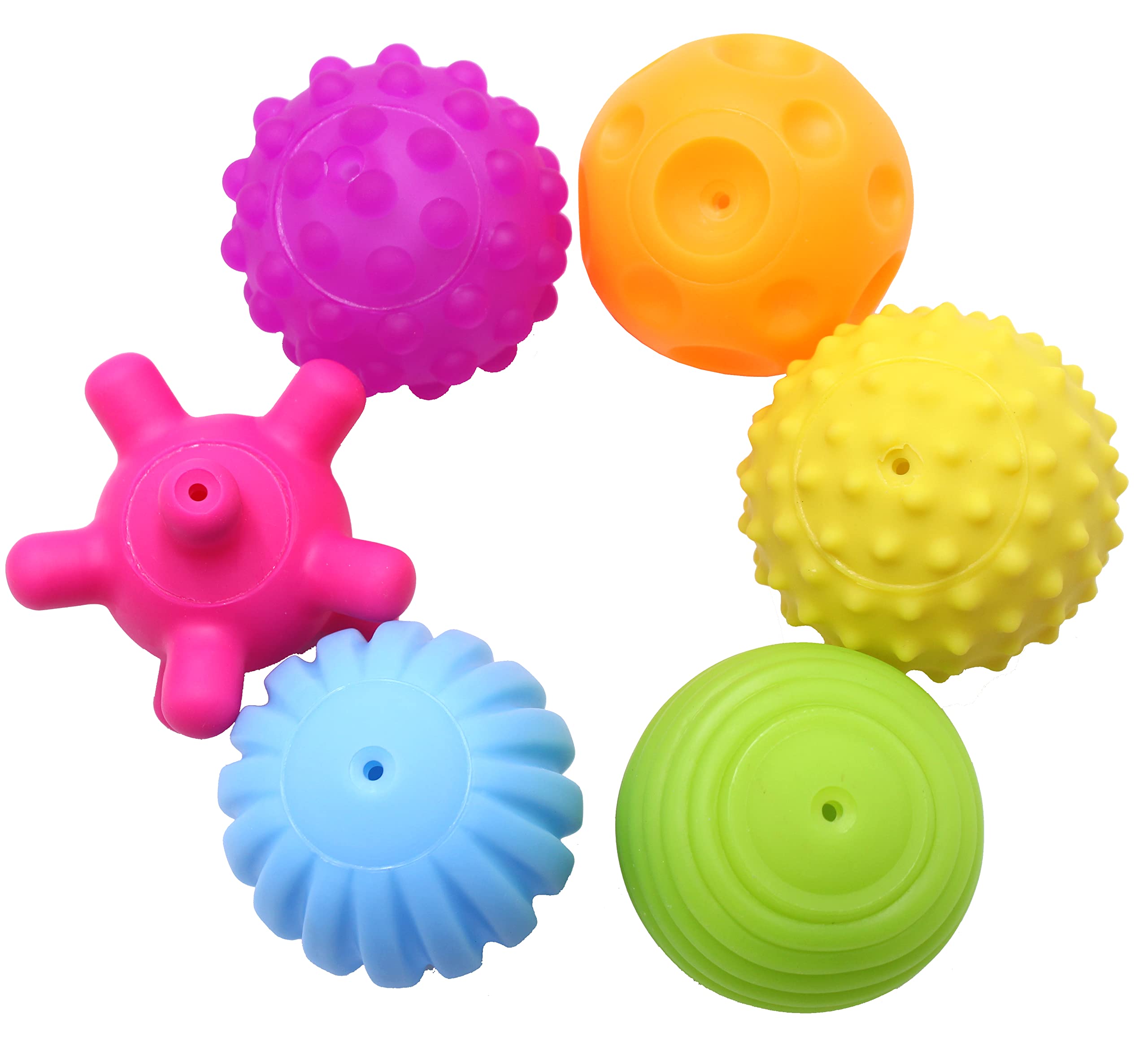 SPECIFICATIONS: Baby Hands Squeeze Balls — Used to exercise kid’s grip, knock, touch and color perception. Sensory balls allow the kid to grab and press it and will not harm the kid. Six different shapes design easy for kid to grab, can stimulate kid’s inspiration while playing. This 6 month baby toys providing support for autistic Children those with ADHD, autism, fidgeting, or stress-related behaviors. It is montessori toys for 1 year old and also a great bath toys for infants 6-12 months and silicone teether toys for infants. NO BB sound device inside the ball, but it can also make sound. Bright colors and interesting texture make the baby like it, and make this funny ball arouse imagination! Cultivate the baby’s vision and color perception. This sensory ball’s for baby is perfect for babies from 6 to 12 months old. Size Information Slightly larger than table tennis, easy for baby to grasp. Different texture ball designed for baby’s interest. There is a BB sound device inside the ball, BB sounds come up when the ball is squeezed, easy to attract baby’s attention. Can be played as bath toys, silicone material feels very good, is a good toy for baby early education!