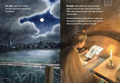 Commemorate the 35th anniversary of the fall of the Berlin Wall with the inspiring true story of Peter’s harrowing escape from East Berlin to West Berlin via hot air balloon! Peter was born on the east side of Germany, the side that wasn’t free. He watches news programs rather than cartoons and wears scratchy uniforms instead of blue jeans. His family endures long lines and early curfews. But Peter knows it won’t always be this way. Peter and his family have a secret. Late at night in their attic, they are piecing together a hot air balloon–and a plan. Can Peter and his family fly their way to freedom? Now in paperback, Flight for Freedom is the true story of one child, Peter Wetzel, and his family, as they risk their lives for the hope of freedom in a daring escape from East Germany in 1979 via a handmade hot air balloon. This thrilling nonfiction picture book is perfect for fans of historical books for young readers like Let the Children March, The Wall:Growing Up Behind the Iron Curtain, and Armstrong: The Adventurous Journey of a Mouse to the Moon. TIMELY YET TIMELESS: Marking 35 years after the fall of the Berlin Wall, this commemorative reprint of a story about a family who risks it all to start anew remains incredibly resonant. TRUE ADVENTURE: This is a harrowing true-to-life account based on in-person interviews with the family and reviewed by them for accuracy. It is a fact-based picture book that makes an excellent addition to classrooms and libraries and an outstanding resource for educators teaching about the Cold War, the Iron Curtain, and East Germany. HISTORY BOOK FOR ALL AGES: Flight for Freedom is a showcase for lessons of bravery, heroism, family, and perseverance, as well as stunning history. Young readers will appreciate the clearly explained differences of a child’s life in East and West Germany and will be excited by the construction and flight of the hot air balloon. The human-centered historical context and gripping storyline will also call out to older readers and adults. IMMERSIVE BACKMATTER: Extensive backmatter, which includes a map of Peter’s journey over the wall, a diagram of the balloon itself, an explanation of how much cloth and gasoline were needed to construct and fly the balloon, some of the history and science behind hot air balloons, and what happened to the family after they landed, will satisfy readers interested in learning more. Perfect for: Fans of true-life escape stories Picture book readers ages 5 – 9 Teachers, librarians, and historians Readers who enjoy the I Survived book series, The 39 Clues, and other children’s action and adventure books