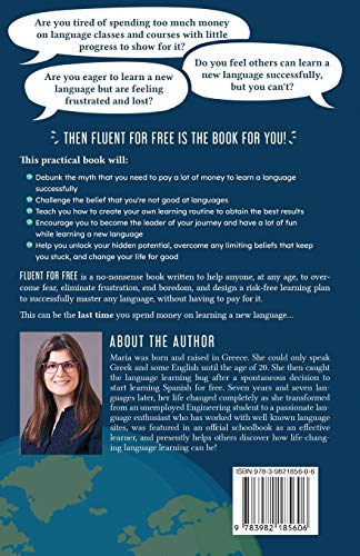 This can be the last time you spend money on learning a new language… Are you tired of spending too much money on language classes and courses with little progress to show for it? Do you feel others can learn a new language successfully, but you can’t? Are you eager to learn a new language but are feeling frustrated and lost? Then Fluent For Free is the book for you! This practical book will: Debunk the myth that you need to pay a lot of money to learn a language successfully Challenge the belief that languages are only for the talented and clever Teach you how to learn a language by yourself and create your own learning routine to obtain the best results Show you how to leverage the internet to master any language at home Suggest free learning resources and methods to choose from Encourage you to become the leader of your journey, find your best learning style, and have a lot of fun while learning a new language Help you unlock your hidden potential, overcome any limiting beliefs that keep you stuck, and change your life for good Fluent For Free is a no-nonsense book written to help anyone, at any age, to overcome fear, eliminate frustration, end boredom, and design a risk-free learning plan to successfully master any language, without having to pay for it. It challenges everything you’ve been told about language learning. Follow the advice in this book and you’ll gain new skills that will help you not only learn another language, but also teach yourself any skill out there! The author used the learning style described in the book to become a web developer / online marketer and work in Germany using no other language but German. What’s stopping you from learning your dream language using 100% free methods? Scroll to the top of the page and click the “buy now” button.