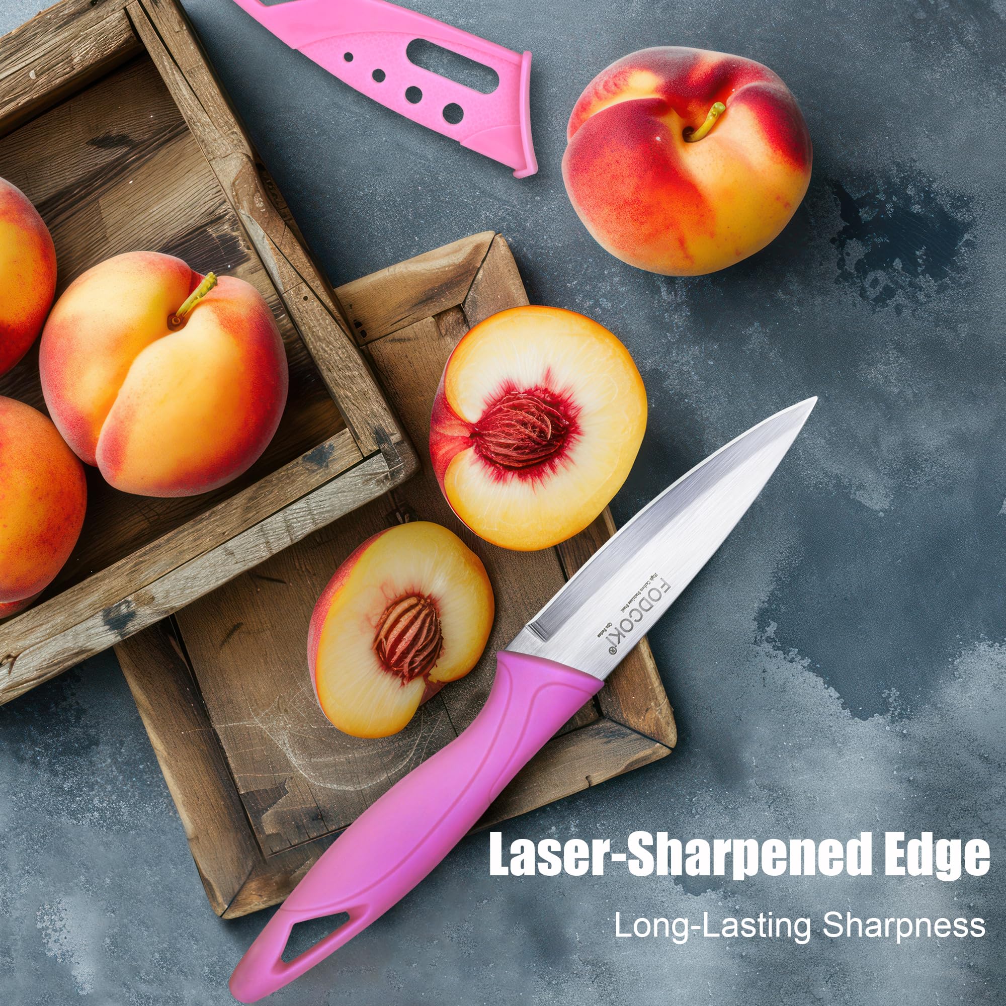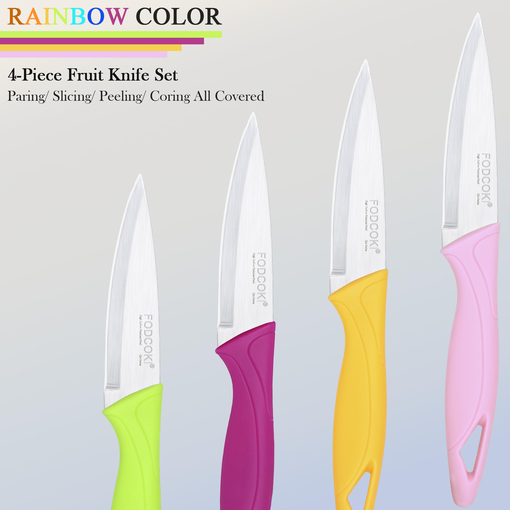 Rainbow Color: With four distinct colors (yellow, green, pink, and purple), this paring knife set allows you to quickly identify the right knife for your fruit or vegetable