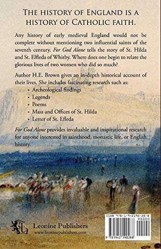 The history of England is a history of Catholic faith. Any history of early medieval England would not be complete without mentioning two influential saints of the seventh century. For God Alone tells the story of St. Hilda and St. Elfleda of Whitby. Where does one begin to relate the glorious lives of two women who did so much? Author H.E. Brown gives an in-depth historical account of their lives. She includes fascinating research such as: – Archeological findings – Legends – Poems – Mass and Offices of St. Hilda – Letter of St. Efleda For God Alone provides invaluable and inspirational research for anyone interested in sainthood, monastic life, or English history.