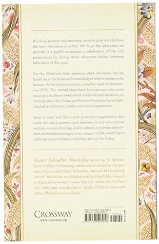 An Effective, Holistic Guide for Teaching Children in Any Educational Setting Every parent and teacher wants to give his or her children the best education possible. They hope that the teaching they provide is a joyful adventure, a celebration of life, and preparation for living. But sadly, most education today falls short of this goal. For the Children’s Sake imagines what education can be based on a Christian understanding of the meaning of life and what it means to be human–a child, a parent, a teacher. The central ideas have been proven over many years and in almost every kind of educational situation, including ideas that author Susan Schaeffer Macaulay and her husband, Ranald, have implemented in their own family and school experience. Includes a foreword by daughter and educator Fiona Fletcher. Simple and Practical: This user-friendly guide helps educators build a stable, enriching, and intellectually stimulating environment for children and also includes a list of additional resources Immersive Teaching: Shows parents and teachers how children’s learning experiences can be extended to every aspect of life Proven Methodology: Used in school settings for 14 years, these easily applicable ideas will benefit parents and teachers in homeschooling, public school, or private school