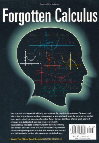 Updated and expanded to include the optional use of graphing calculators, this combination textbook and workbook is a good teach-yourself refresher course for men and women who took a calculus course in school, have since forgotten most of what they learned, and now need some practical calculus for business purposes or advanced education. The book is also very useful as a supplementary text for students who are taking calculus and finding it a struggle. Each progressive work unit offers clear instruction and worked-out examples. Special emphasis has been placed on business and economic applications. Topics covered include functions and their graphs, derivatives, optimization problems, exponential and logarithmic functions, integration, and partial derivatives.
