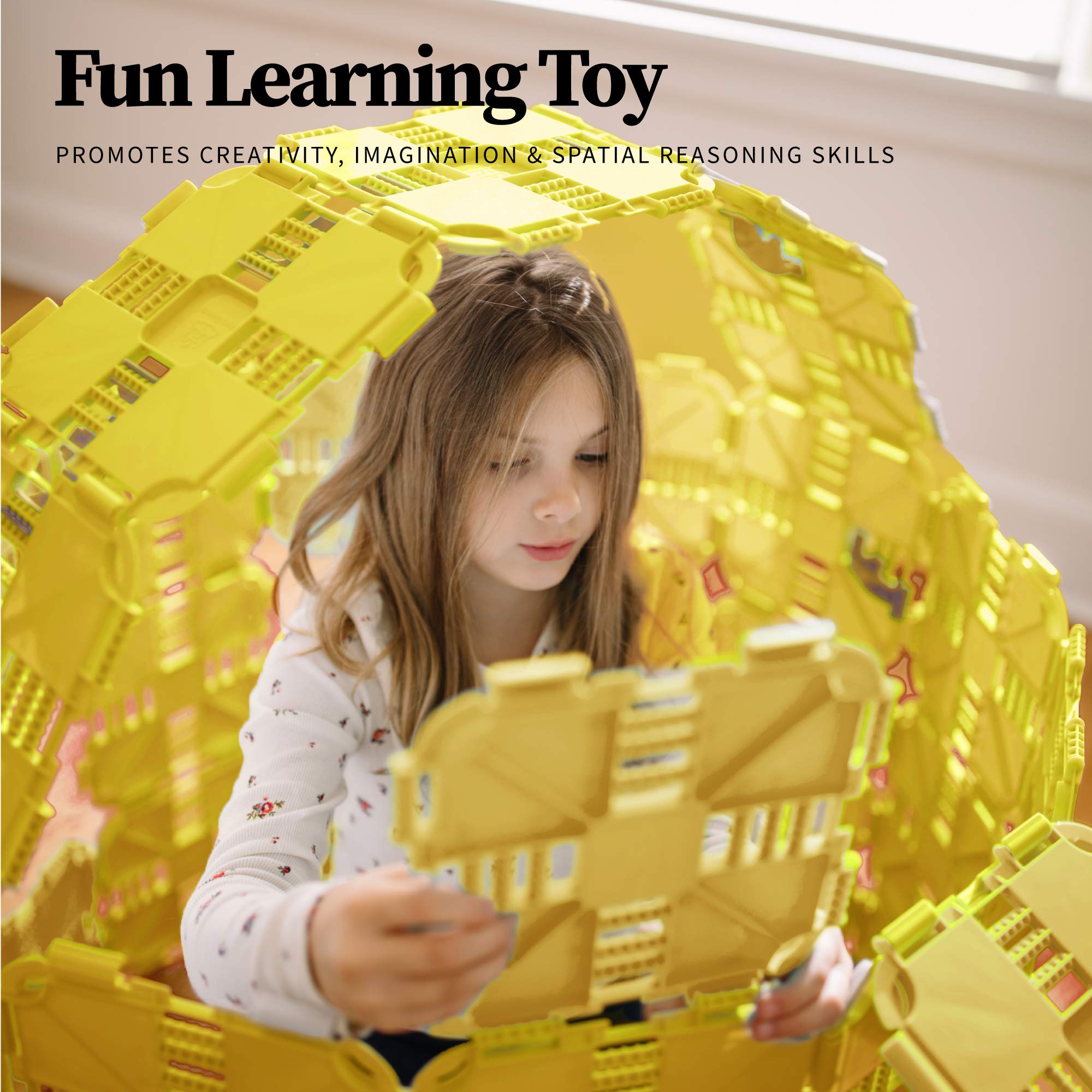 Fort Boards: Yellow Set - Deluxe Fort Building Kit for Kids - Versatile Indoor Outdoor Play Set for Ages 5-12, STEM Educational Toy for Building Castles, Cars, and More