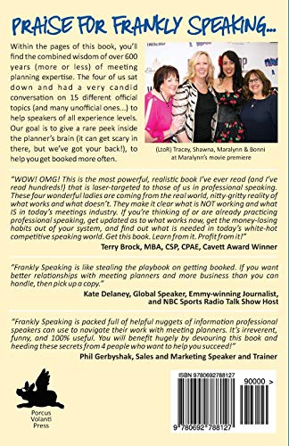 Within the pages of this book, you’ll find the combined wisdom of over 600 years (more or less) of meeting planning expertise, all aimed at helping you book more business as a speaker. The four of us sat down and had a very candid conversation on fifteen different official topics (and many unofficial ones…) to help speakers of all experience levels navigate their prospecting and relationship-building with planners. Our goal is to give a rare peek inside the planner’s brain (it can get scary in there, but we’ve got your back!). We want you to be more findable, likeable, memorable, and bookable! What speakers are saying: “WOW! OMG! This is the most powerful, realistic book I’ve ever read (and I’ve read hundreds!) that is laser-targeted to those of us in professional speaking. These four wonderful ladies are coming from the real world, nitty-gritty reality of what works and what doesn’t. They make it clear what is NOT working and what IS in today’s meetings industry. If you’re thinking of or are already practicing professional speaking, get updated as to what works now, get the money-losing habits out of your system, and find out what is needed in today’s white-hot competitive speaking world. Get this book. Learn from it. Profit from it!” – Terry Brock, MBA, CSP, CPAE, Cavett Award Winner “Frankly Speaking is like stealing the playbook on getting booked. If you want better relationships with meeting planners and more business than you can handle, then pick up a copy.” – Kate Delaney, Global Speaker, Emmy-winning Journalist, and NBC Sports Radio Talk Show Host “Frankly Speaking is packed full of helpful nuggets of information professional speakers can use to navigate their work with meeting planners. It’s irreverent, funny, and 100% useful. You will benefit hugely by devouring this book and heeding these secrets from 4 people who want to help you succeed!” – Phil Gerbyshak, Sales and Marketing Speaker and Trainer