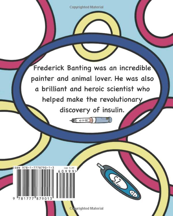 In this book you will explore the fascinating life of Frederick Banting, the scientist and doctor who helped discovered insulin. Meet young Frederick — a shy boy who loved to play with his dogs on a farm in Ontario, Canada. He had a very challenging time at school, yet he was able to graduate and become a doctor and scientist. Though many didn’t believe he was smart enough, he went on to discover a miraculous treatment for children who suffered from diabetes — it is called INSULIN! An informative and playful picture book with inspirational undertones, Frederick Banting and the Amazing Discovery of Insulin is sure to educate and inspire young minds. Additional information at the back of the book includes a brief description of what diabetes is, how people with diabetes check their blood sugars, and what devices children use to give themselves insulin.