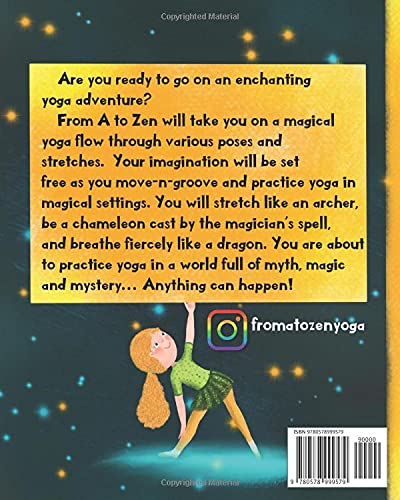 Are you ready to go on an enchanting yoga adventure? From A to Zen is a complete children’s follow along yoga flow. This interactive story is designed to help children (and adults) flow through various poses while practicing mindful movements. Each letter of the alphabet has its own yoga tale to tell and naturally transitions into the next pose. Vivid imagery and delightful suspense will keep the reader excited to see what yoga pose will come next. All you have to do is thoughtfully follow the instructions and illustrations on each page. Use your imagination, find your voice, get into character, and have fun! You will stretch like an archer, be a chameleon cast by the magician’s spell, and breathe fiercely like a dragon. You are about to practice yoga in a world full of myth, magic and mystery… Anything can happen!
