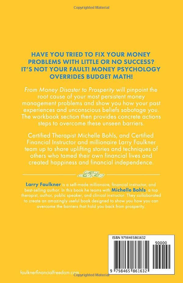 From the author of The Illustrated Guide to Financial Independence, an Amazon #1 Bestseller in Personal Budgeting Finance Book Certified Therapist Michelle Bohls and Certified Financial Instructor and millionaire next door Larry Faulkner have written a groundbreaking book that explores the psychology of money. The team shows how childhood trauma and stress lead to a variety of adult emotional issues and lifelong money management problems that can have lifelong effects. Persistent money problems include: Chronic overspending Vowing to spend less but not doing so A boom-and-bust cycle of budgeting Constantly struggling to pay bills Not understanding how much money is coming in or where it goes Budget and bill avoidance No savings plan Alarmingly high debt No 401K, investing, or retirement plan Marriage and committed relationship issues From Money Disaster to Prosperity teaches you how to recognize the specific problems that block your financial success, the root cause of those problems, and simple action steps needed to improve your financial intelligence and money success. It also contains amazing stories of others who overcame these same problems. Just a few perspectives shifts can change your entire financial world.