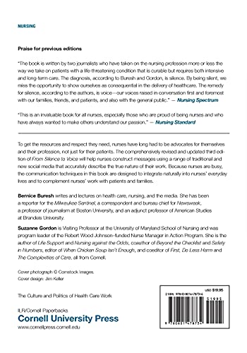 This is an invaluable book for all nurses, especially those who are proud of being nurses and who have always wanted to make others understand our passion.a* Nursing Standard For more than a decade, From Silence to Voice has been providing nurses with communication tools they can use to win the resources and respect they deserve. Now, in a timely third edition, authors Bernice Buresh and Suzanne Gordon focus on how nurses can describe and frame their work to seize unprecedented opportunities to advance their profession and lead improvements in health care systems.The authors, both journalists, argue that because nursing needs the support and cooperation of others to fulfill its potential, it is critical that nurses communicate the full scope of nursing practice. Nurses must go beyond describing nursing in terms of dedication and caring and articulate nurses’ specialized knowledge and expertise. From Silence to Voice helps nurses explain their contributions to patient safety, satisfaction, and outcomes. It shows how nurses can communicate with various publics about important aspects of their work, such as how they master and employ complex medical technologies and regimens, and how they use their clinical judgment in life-and-death situations. “Nurses and nursing organizations,” the authors write, “must go out and tell the public what nurses really do so that patients can actually get the benefit of their expert care.” This comprehensively revised and updated third edition helps nurses use a range of traditional and social media to accurately describe the true nature of their work. Its analyses of images that are projected by nursing campaigns and its detailed guidance in helping nurses construct positive and powerful narratives of their work make From Silence to Voice a must-read in nursing schools and organizations and by individual nurses in all areas of the profession. Because nurses are busy, many of the communication techniques in this book are designed to integrate naturally into nurses’ everyday lives and to complement nurses’ work with patients and families.