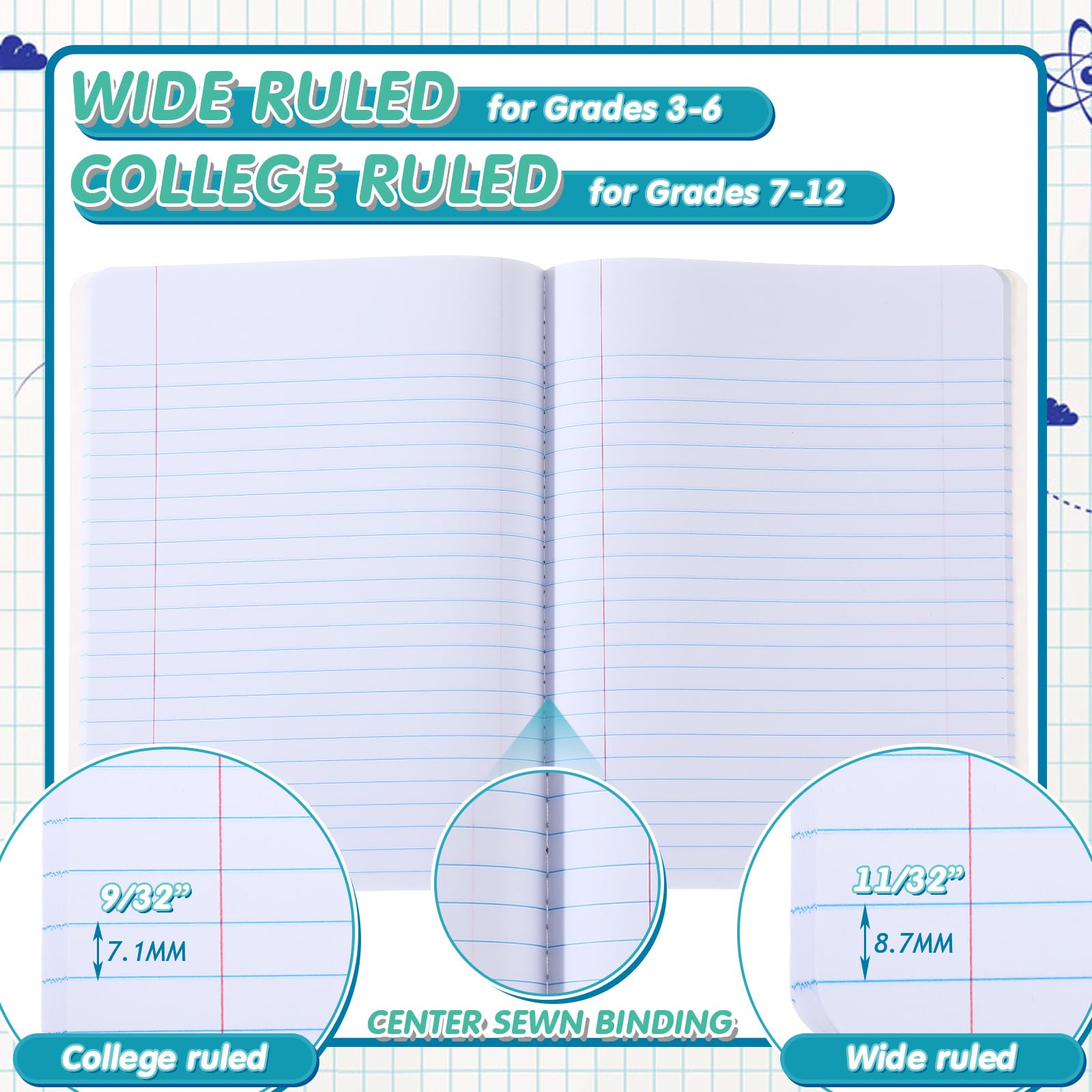 - Versatile Usage: suitable for middle schoolers, high schoolers, college students, and even professionals, these composition books are suitable for writing programs, journaling, artwork, and other school supplies; The college ruled design is nice for those who prefer a more spacious line layout