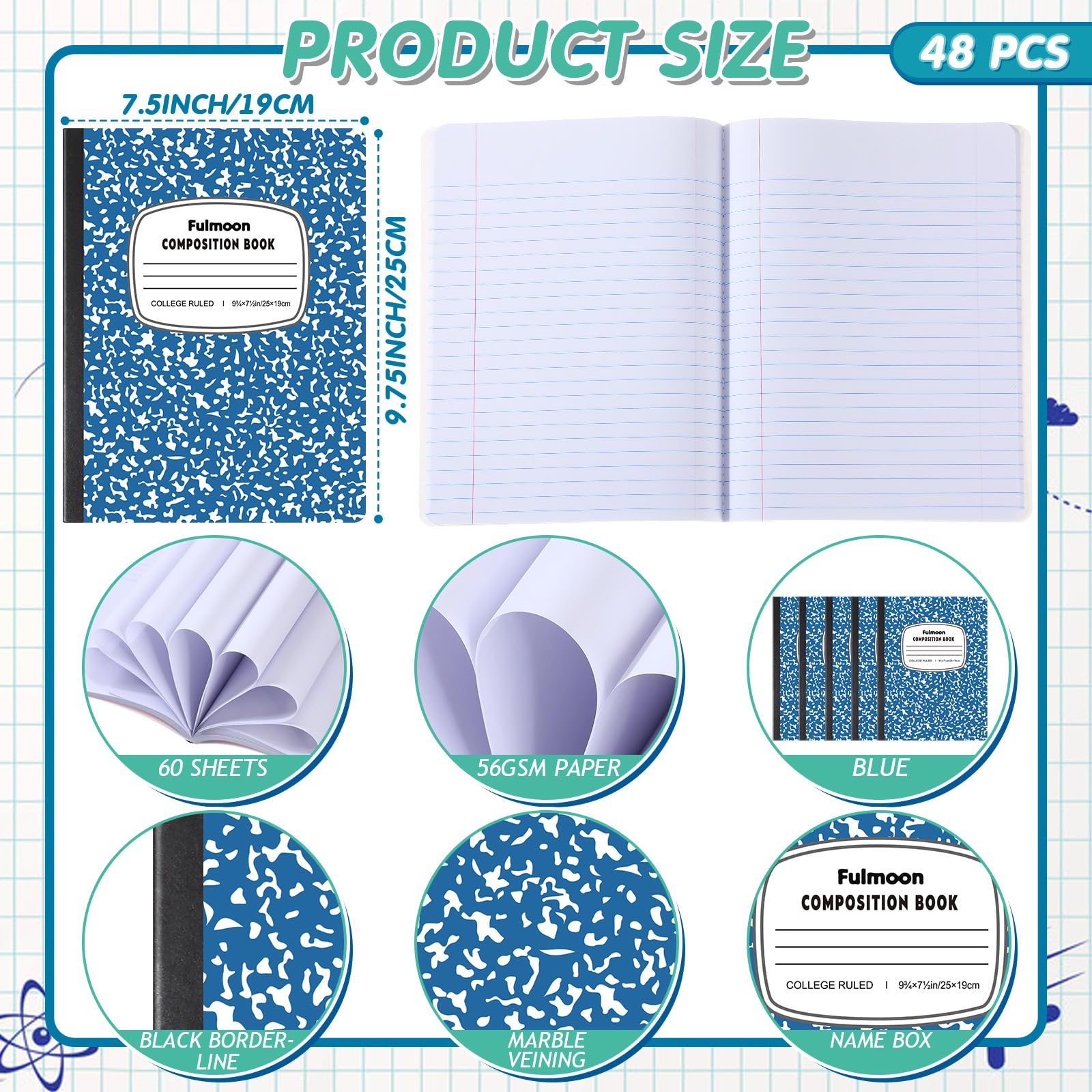 - Value Package: each package includes 48 blue college ruled composition notebooks; You’ll have a notebook for every subject, project, or any other writing need; This bulk set offers value for students, educators, and anyone who needs multiple notebooks at once