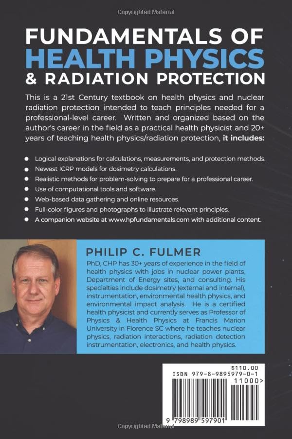 This is an all-new 21st century textbook on nuclear radiation safety. It is not an all-purpose reference book but a solid introduction to the science of radiation protection. Based on the author’s career as a health physicist and 20+ years of teaching classes to university students and in nuclear facilities, the chapters are organized in a logical progressive manner. The content is aimed for first-time students who have had basic classes in nuclear radiation interactions and radioactivity so that the learning begins immediately with principles of radiation safety. Modern calculational methods are taught along with techniques to use online resources and software to quickly advance beyond rudimentary hand calculations. Over 350 pages of solid learning material show the technical basis for how professional-level radiation protection personnel approach problems in the workplace. Foundational in its approach, this book prepares the reader to understand why things work as they do and then apply the principles to specific workplace environments where radiation and radioactive materials are used.. Reference tables are at a minimum with the emphasis on obtaining information from reputable online sources. Ideal for a two-semester course but can work as a self-study resource. A companion website at www.hpfundamentals.com provides even more material, calculational tools, and web links for all the online tools and software discussed in the textbook. It’s a unique approach and gives even more learning opportunities and flexibility for faculty and students alike. 1. Quantities and Units 2. Summary of Biological Effects of Radiation 3. Radiation Exposures to People 4. Dosimetry Calculations for External Sources of Radiation 5. Dosimetry Measurements for External Sources of Radiation 6. Controlling External Radiation Dose in the Workplace 7. Dosimetry Models for Internal Sources of Radiation 8. Measurements and Calculations of Dose from Internal Sources of Radiation 9. Controlling Internal Exposures in the Workplace 10. Principles of Radiation Protection in the Workplace 11. Environmental Health Physics Fate and Transport Modeling 12. Environmental Health Physics Monitoring
