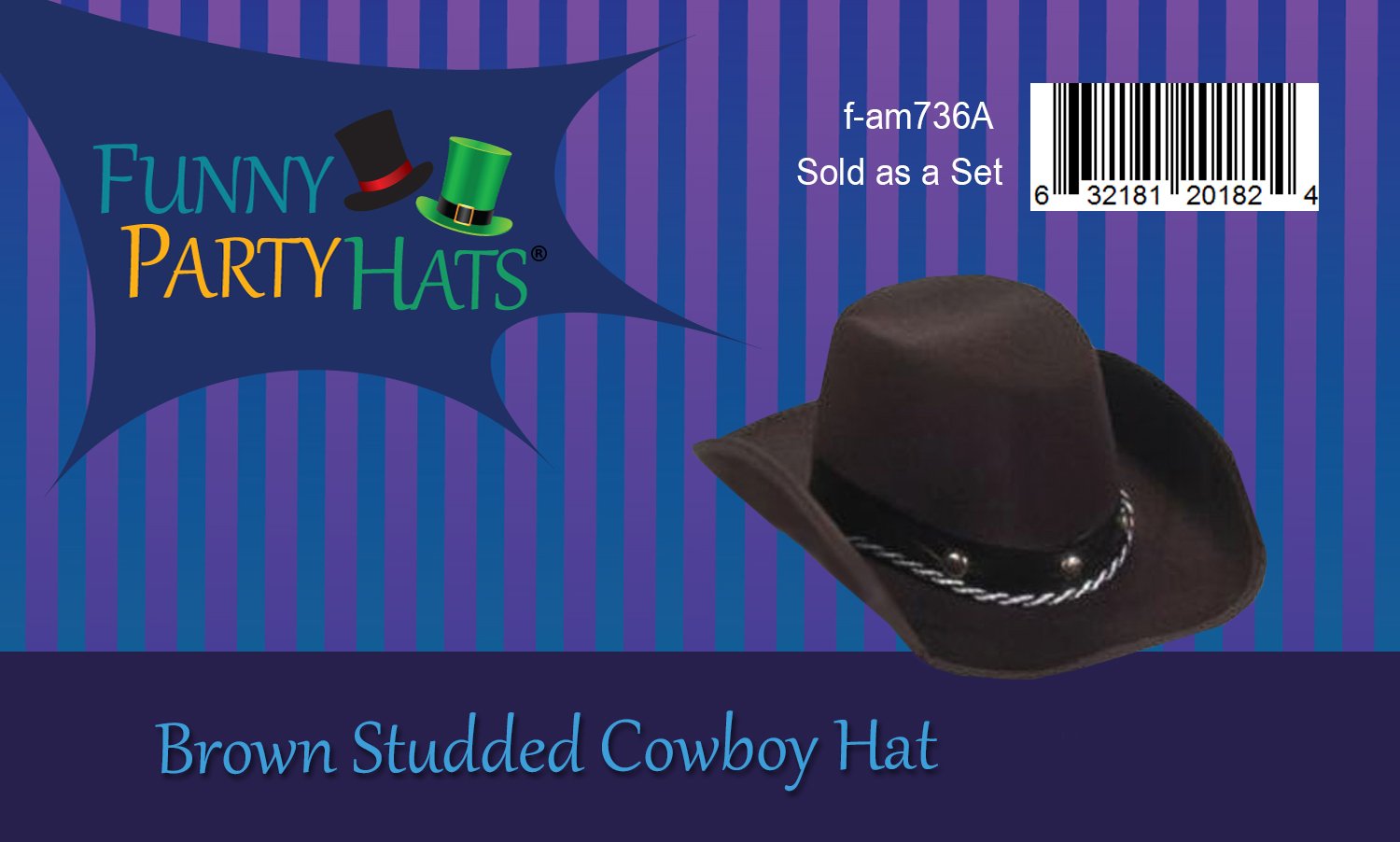 Description Baby Cowboy Hat – Western Brown Studded Cow Boy Hat for Kids and Babies, Dress Up Accessories by Funny Party Hats. Hat is made of Brown felt. Hat measures 20″ inches, perfect for babies and kids. Quick and easy Halloween costume. The perfect hat for a themed birthday country or western party.