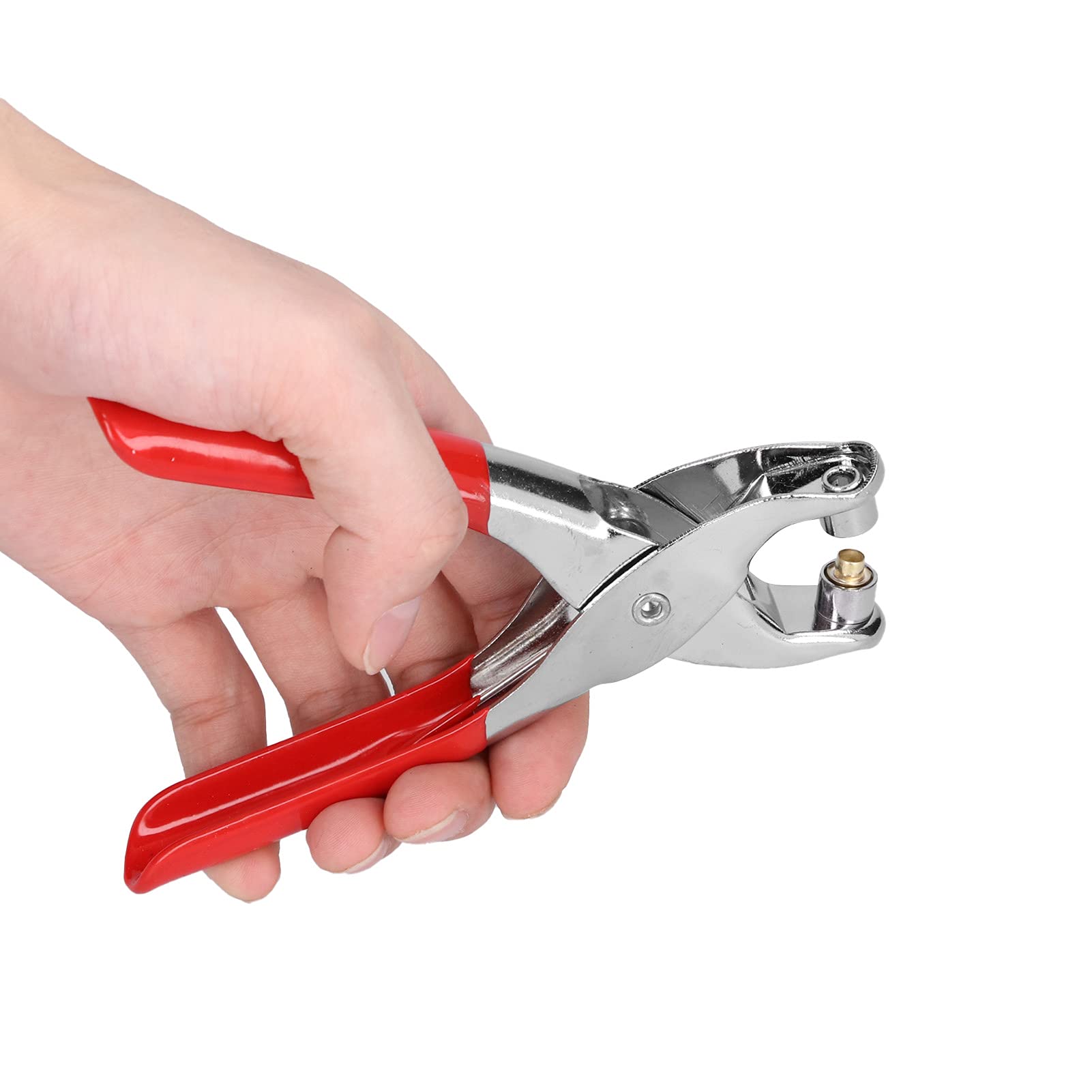 - 3.Convenient and practical: one-piece punch pliers is made of steel, plastic-impregnated PVC handle, The handle of the eyelet puncher features a plastic layer, effectively preventing slippage, 5.9-inch metal pliers, can be placed directly after the eyelet is pressed, simple and convenient; The eyelet pliers can apply the eyelets into a variety of materials, such as fabric, leather, soft and thin plastic, acrylic, canvas, suede and more
