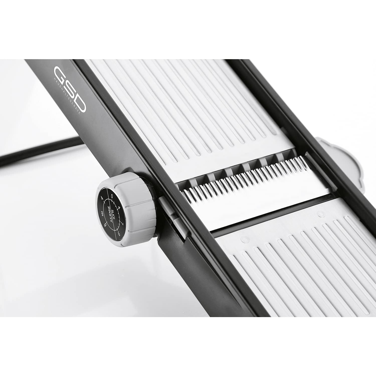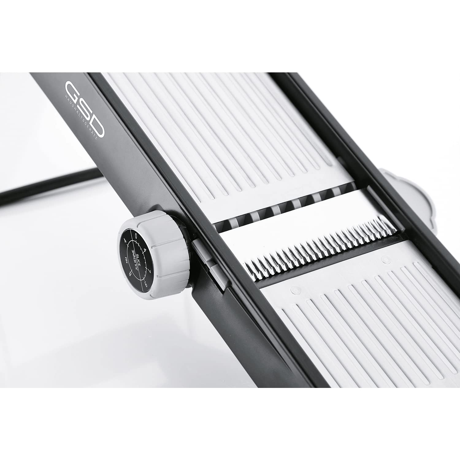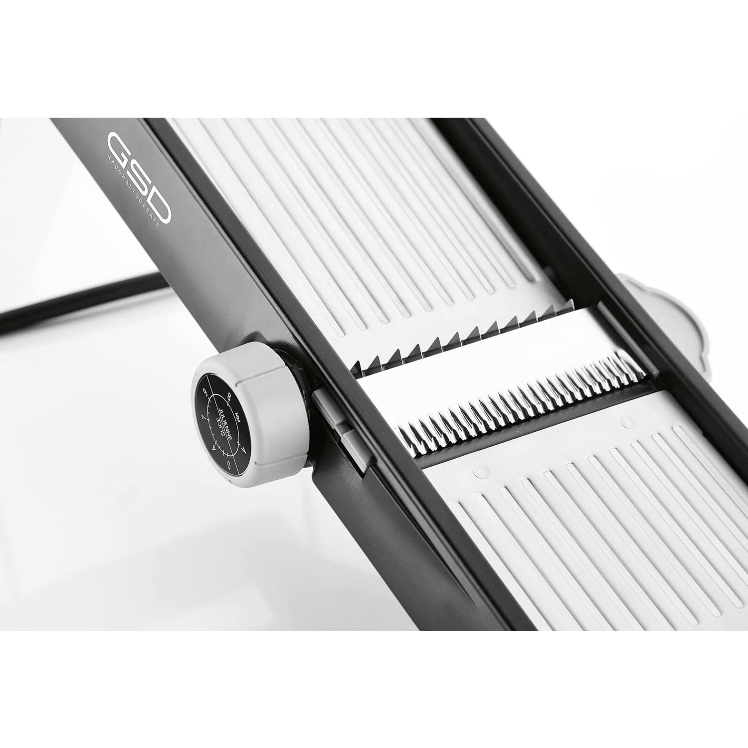 - Versatile: the professional mandolin from GSD, ideal for use in the catering industry and of course also for the home. With the integrated cutting sets, raw food or cheese quickly turns into slices, pens or strips. Of course, waves and waffles can also be cut.