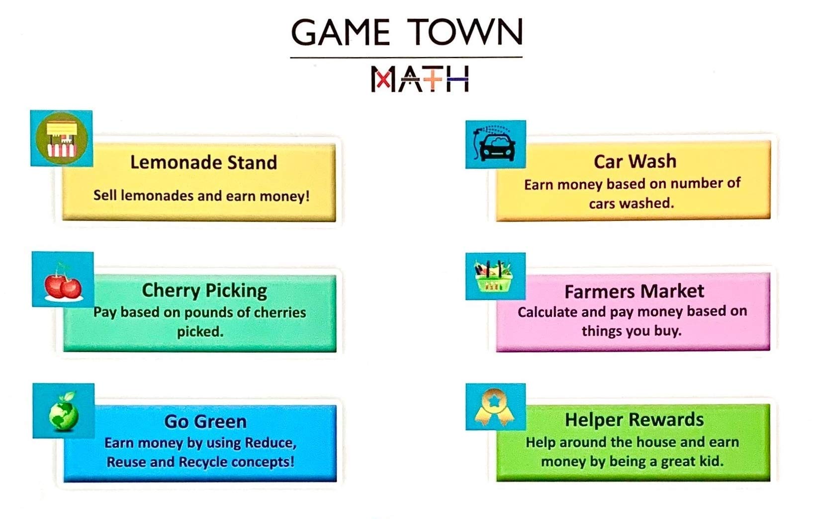 Game Town Math – Educational Board Game for Kids 8-12 & Over | 100+ Math Problems | Life Skills, Model Behaviors, Environmental Concepts, and More