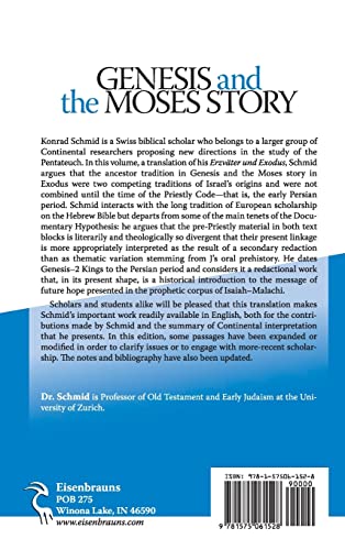Konrad Schmid is a Swiss biblical scholar who belongs to a larger group of Continental researchers proposing new directions in the study of the Pentateuch. In this volume, a translation of his Erzvater und Exodus, Schmid argues that the ancestor tradition in Genesis and the Moses story in Exodus were two competing traditions of Israel’s origins and were not combined until the time of the Priestly Code–that is, the early Persian period. Schmid interacts with the long tradition of European scholarship on the Hebrew Bible but departs from some of the main tenets of the Documentary Hypothesis: he argues that the pre-Priestly material in both text blocks is literarily and theologically so divergent that their present linkage is more appropriately interpreted as the result of a secondary redaction than as thematic variation stemming from J’s oral prehistory. He dates Genesis-2 Kings to the Persian period and considers it a redactional work that, in its present shape, is a historical introduction to the message of future hope presented in the prophetic corpus of Isaiah-Malachi. Scholars and students alike will be pleased that this translation makes Schmid’s important work readily available in English, both for the contributions made by Schmid and the summary of continental interpretation that he presents. In this edition, some passages have been expanded or modified in order to clarify issues or to engage with more-recent scholarship. The notes and bibliography have also been updated. Dr. Schmid is Professor of Old Testament and Early Judaism at the University of Zurich.