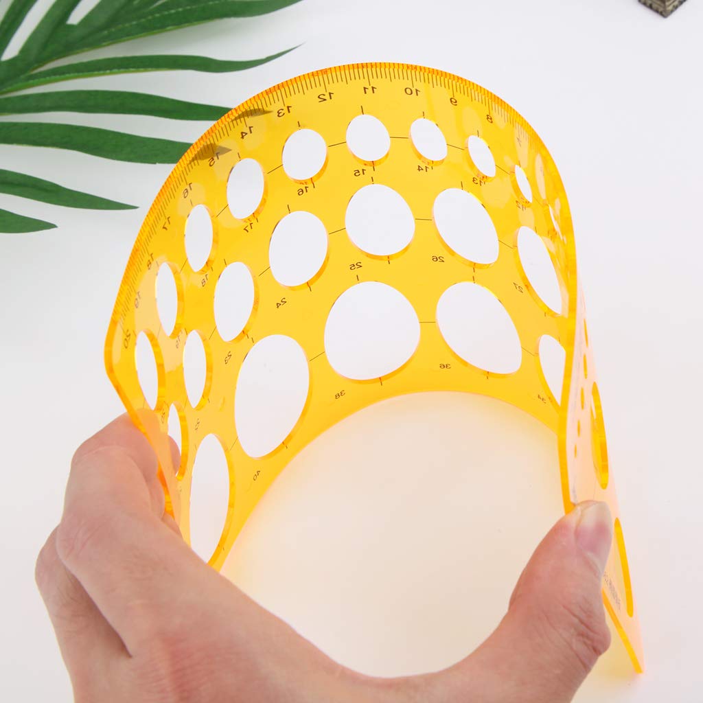 This drafting template assists students in technical drawing, geometry, and mathematics by providing precise shapes and measurements.