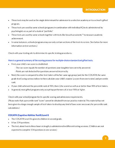 This workbook helps a second-grade student prepare for the COGAT Level 8 gifted and talented assessment.