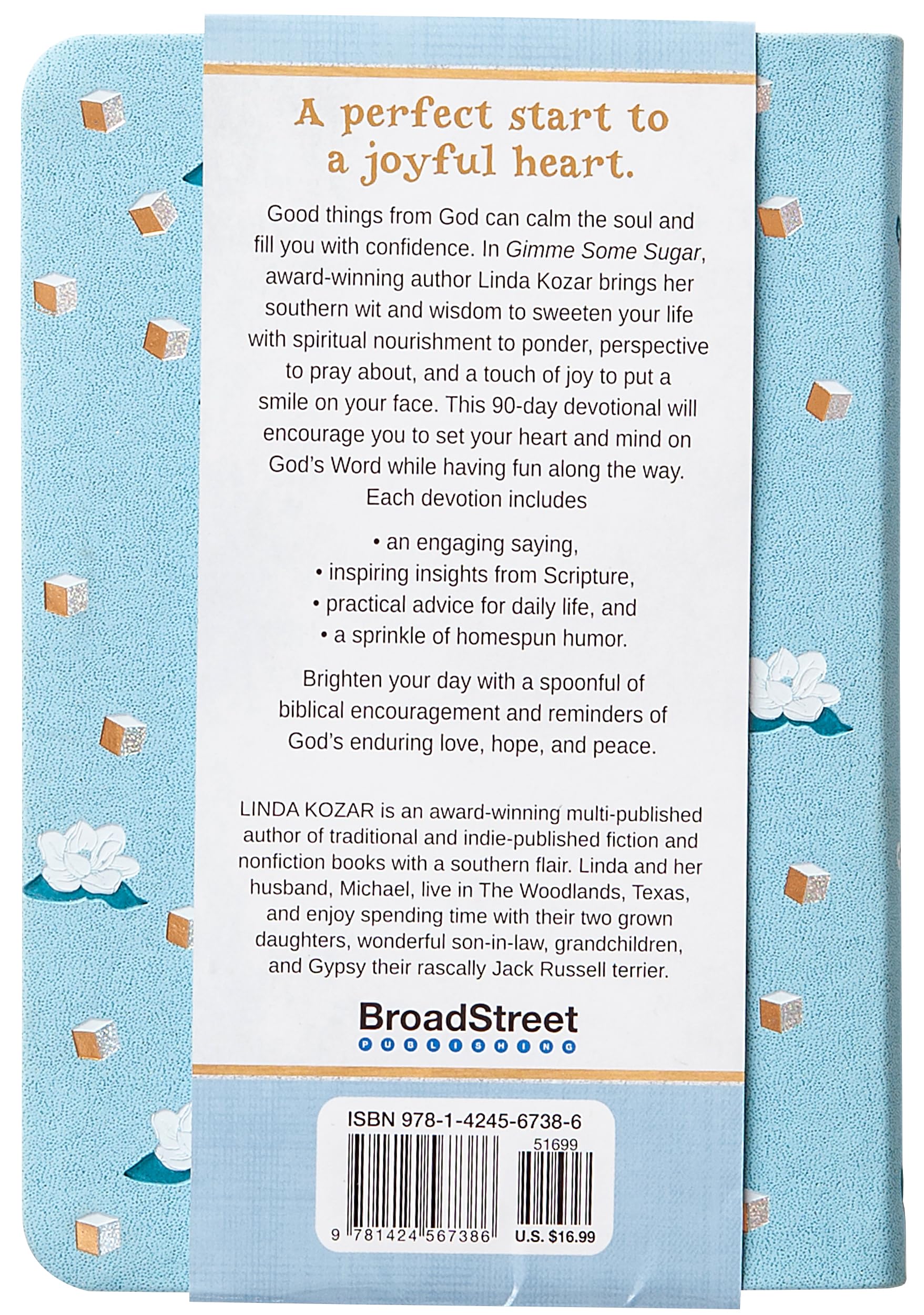 Gimme Some Sugar received 2nd Place winner for Christian Market Book Award’s Nonfiction Book of the Year 2024 (Advanced Writers and Speakers Association). A perfect start to a joyful heart. Good things from God can calm the soul and fill you with confidence. In Gimme Some Sugar, award-winning author Linda Kozar brings her southern wit and wisdom to sweeten your life with spiritual nourishment to ponder, perspective to pray about, and a touch of joy to put a smile on your face. This 90-day devotional will encourage you to set your heart and mind on God’s Word while having fun along the way. Each devotion includes an engaging saying, inspiring insights from Scripture, practical advice for daily life, and a sprinkle of homespun humor. Brighten your day with a spoonful of biblical encouragement and reminders of God’s enduring love, hope, and peace.