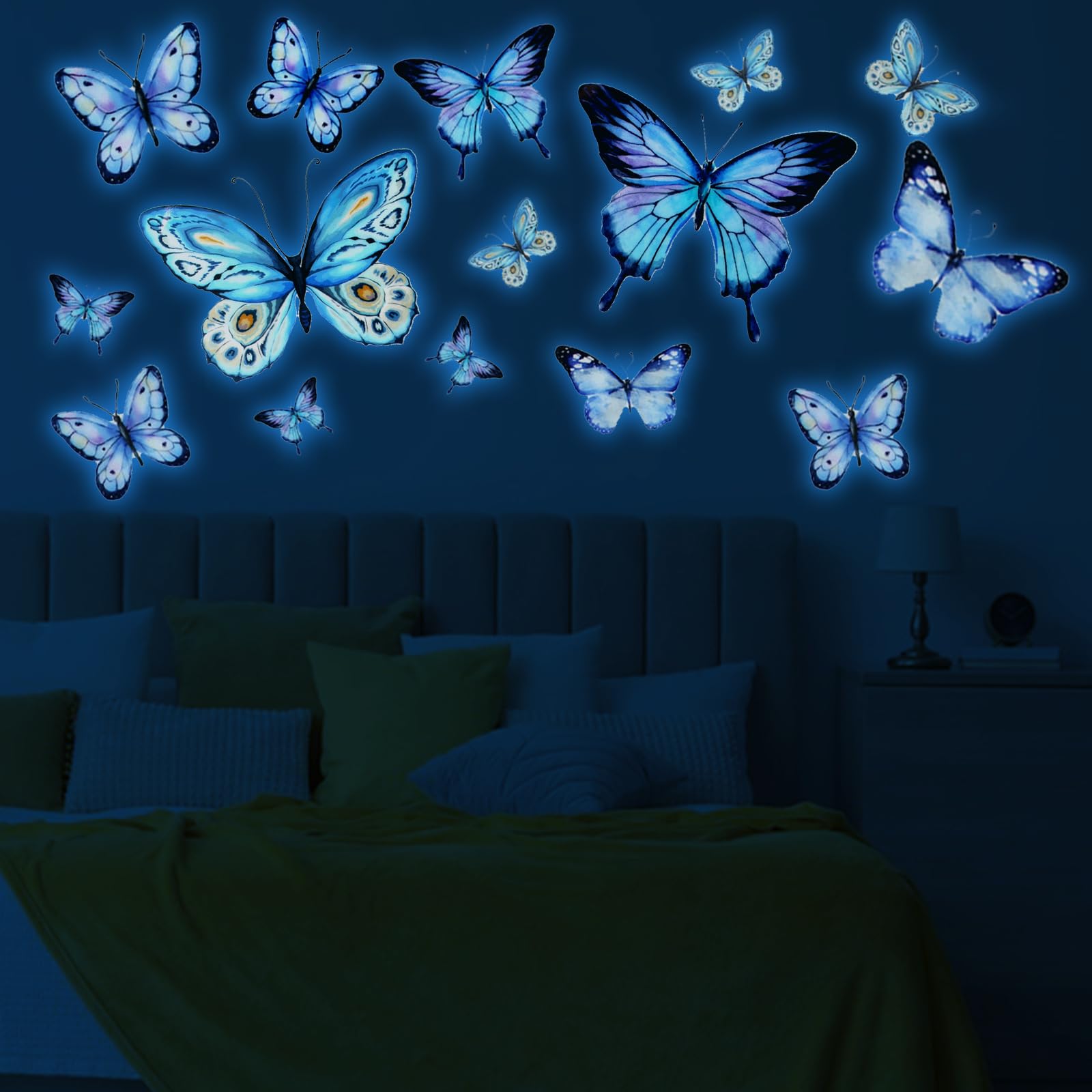 Glow in The Dark Blue Luminous Butterfly Wall & Ceiling Stickers - Removable Decals for Kids' Nursery or Bedroom