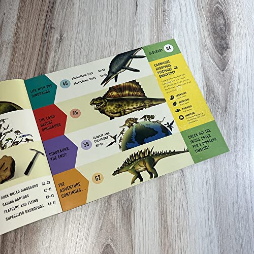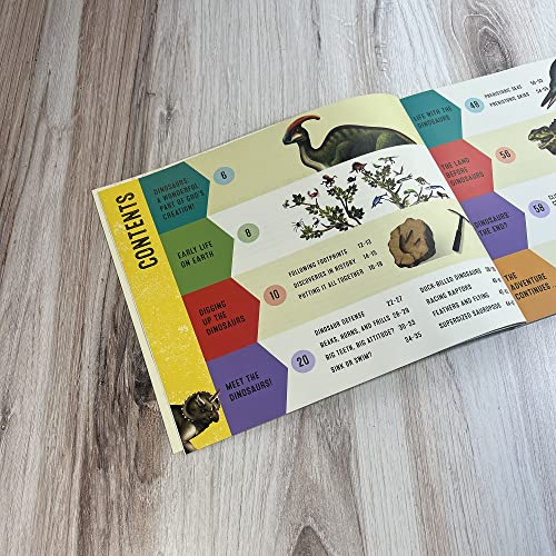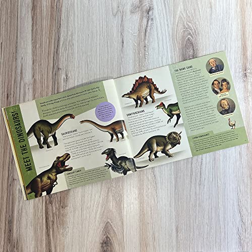 This book teaches children about science and natural history through facts about dinosaurs and fossils.