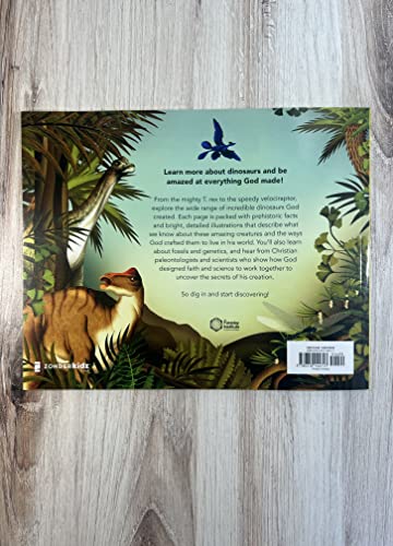 In this beautifully illustrated softcover picture book for young readers, discover fun facts and scientific information about dinosaurs, fossils, and prehistoric life, all in a faith-based context. Learn how the Bible and science connect, what the fossil record and paleontologists throughout history have taught us, and how dinosaurs embody the creativity and awesomeness of God’s creation. From T. rexes to pterodactyls, God Made the Dinosaurs is jam-packed with fascinating information about the creatures that once roamed earth, sea, and sky. Delving into what we’ve learned from fossils and genetics, young paleontologists will love exploring the rich, detailed illustrations and soaking up the fun, educational facts. God Made the Dinosaurs goes a step further than other dinosaur books, answering readers’ curiosity about how science aligns with faith and showing them how science and religion can work together to teach us all about the amazing world God has created. God Made the Dinosaurs is perfect for: Kids ages 6-10 who love dinosaurs and fossils Parents who want to answer questions about faith and science Educators and Sunday school teachers looking for STEM books that are rooted in faith