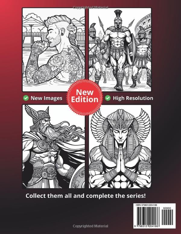 Gods and Men Coloring Book for Adults: 3-in-1 Collection (100+ pages) Are you ready to bring power, strength, and divine beauty to life with your colors? Gods and Men Coloring Book for Adults is the ultimate 3-in-1 collection, featuring the best illustrations from my first three volumes. If you love mythology, history, and bold masculine designs, this book is a must-have! What’s Inside? VOL 1: Gods – Immerse yourself in a world of powerful deities, legendary beings, and divine warriors, all waiting for your artistic touch. VOL 2: Gladiators & the Roman Empire – Step back in time and experience the intensity of the ancient arenas, where fearless warriors fought for glory. VOL 3: Muscular & Tattooed Men – Discover bold and charismatic figures, filled with raw strength, intricate tattoos, and captivating poses. With over 100 pages of high-quality illustrations, this collection is designed for those who appreciate the beauty and power of the male form. Whether you enjoy detailed line art, historical themes, or bold masculine imagery, this book will provide you with hours of relaxation and artistic expression. 100+ Page Collection: The Perfect Gift for Art & Coloring Lovers Looking for a unique and thoughtful gift? This coloring book is perfect for: Art enthusiasts who love intricate and inspiring designs. History & mythology fans who appreciate legendary figures. Anyone seeking a relaxing escape through creativity. Grab your favorite colors and let your imagination run wild! Bring these gods, warriors, and striking handsome men to life in your own unique style. Get your copy today and enjoy the ultimate coloring experience!
