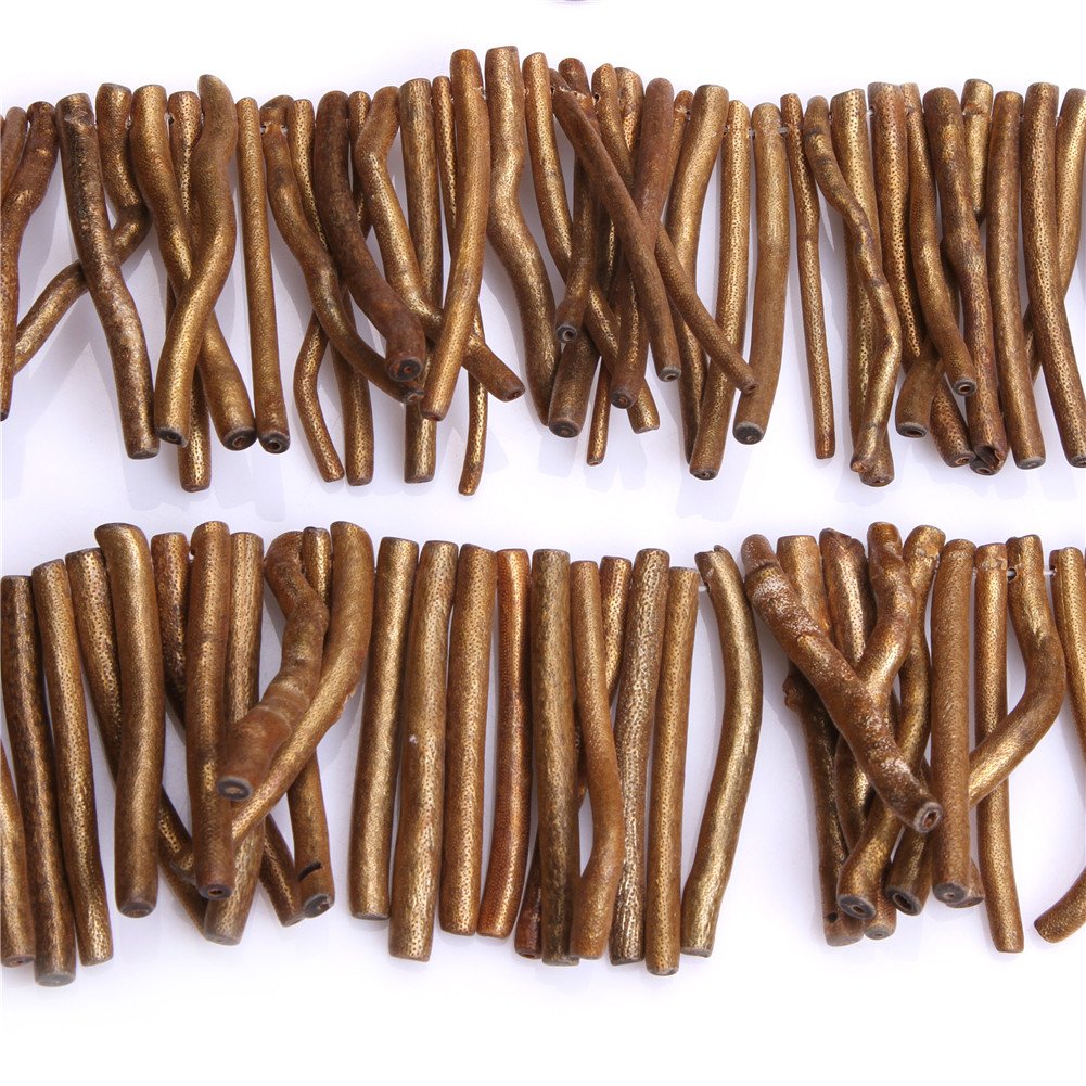 Gold Coral Beads for Jewelry Making Gemstone Semi Precious 5x40mm Branch 15″ Dyed Color JOE FOREMAN