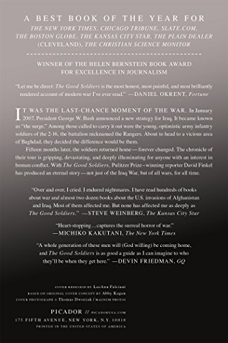 The Prequel to the Bestselling Thank You for Your Service, Now a Major Motion Picture With The Good Soldiers, Pulitzer Prize-winning reporter David Finkel has produced an eternal story — not just of the Iraq War, but of all wars, for all time. It was the last-chance moment of the war. In January 2007, President George W. Bush announced a new strategy for Iraq. It became known as “the surge.” Among those called to carry it out were the young, optimistic army infantry soldiers of the 2-16, the battalion nicknamed the Rangers. About to head to a vicious area of Baghdad, they decided the difference would be them. Fifteen months later, the soldiers returned home — forever changed. The chronicle of their tour is gripping, devastating, and deeply illuminating for anyone with an interest in human conflict.