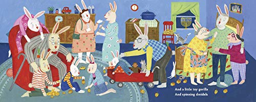 This festive parody reimagines a classic bedtime book as a lively Jewish family gathering complete with bubbies and zeydes–a perfect gift or read aloud that includes an exclusive latke recipe by Ina Garten, TV’s Barefoot Contessa! In the small blue room there was a bubbala, and a little shmatta, and then–oy vey!–came the whole mishpacha! This zesty parody of one of America’s favorite picture books offers a very different bedtime routine: one that is full of family exuberance and love. Instead of whispers of “hush,” this bedtime includes dancing and kvelling, and of course, noshing–because this little bunny is a Jewish bunny, and this joyous book celebrates the Jewish values of cherishing your loved ones, expressing gratitude, and being generous. Filled with Yiddish words, the book includes a phonetic glossary and even an easy latke recipe by beloved cookbook author Ina Garten, who calls the book “brilliant, beautiful, important, and so much fun!”