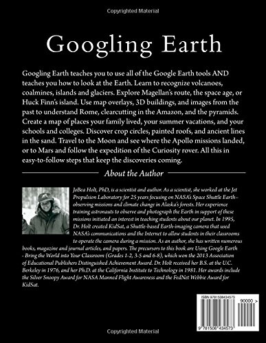 Googling Earth teaches you to use all of the Google Earth tools AND teaches you how to look at the Earth. Learn to recognize volcanoes, coalmines, islands and glaciers. Explore Magellan’s route, the space age, or Huck Finn’s island. Use map overlays, 3D buildings, and images from the past to understand Rome, clearcutting in the Amazon, and the pyramids. Create a map of places your family lived, your summer vacations, and your schools and colleges. Discover crop circles, painted roofs, and ancient lines in the sand. Travel to the Moon and see where the Apollo missions landed, or to Mars and follow the expedition of the Curiosity rover. All this in easy-to-follow steps that keep the discoveries coming.