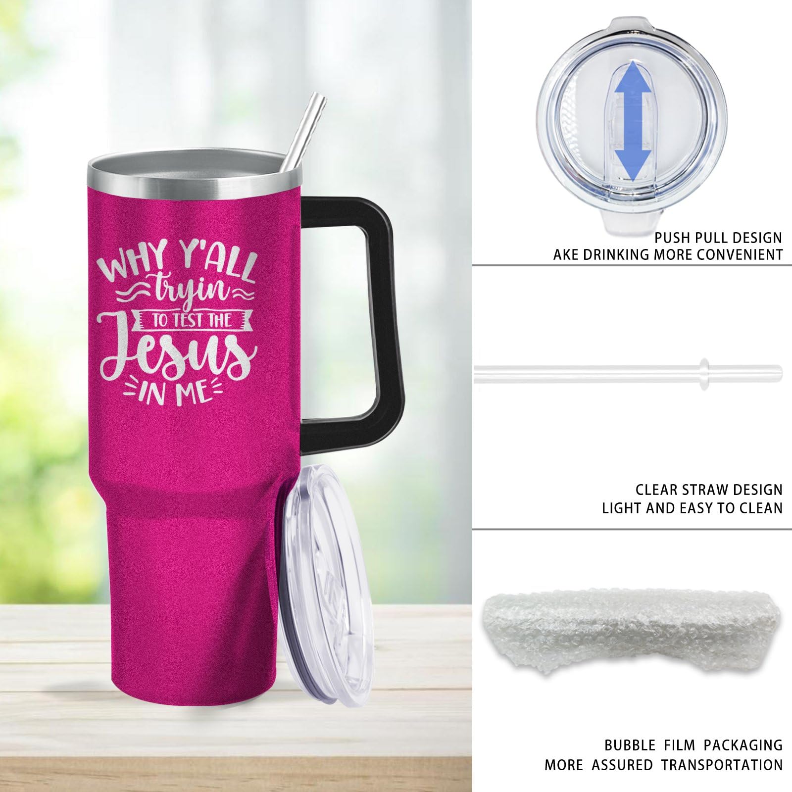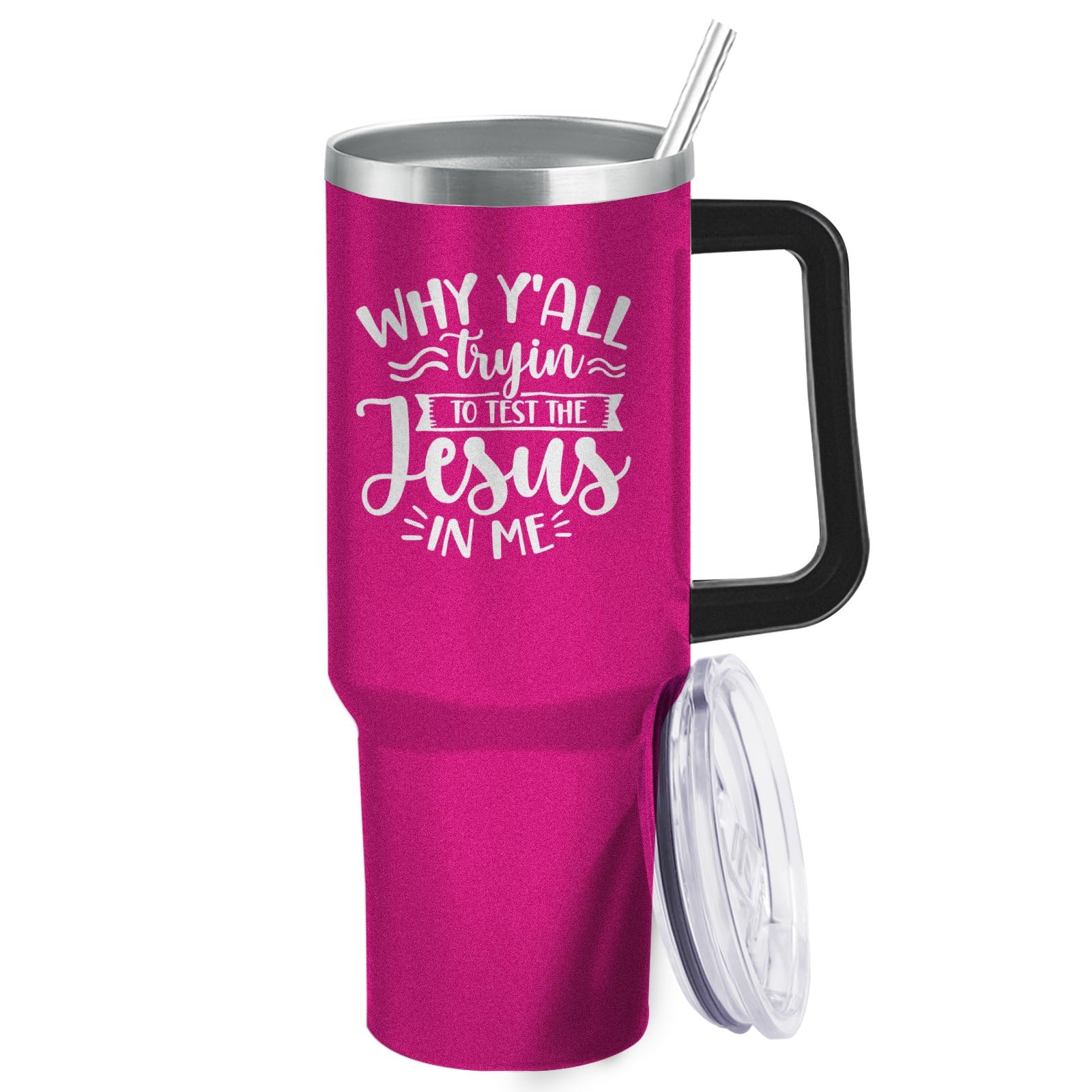 - Tumbler Travel Mug Why Y’all Trying To Test The Jesus In Me_ Tumbler Travel Mug Stainless Tumbler with Lids and Straws Naughty Birthday Gift for Uncle for Outdoor