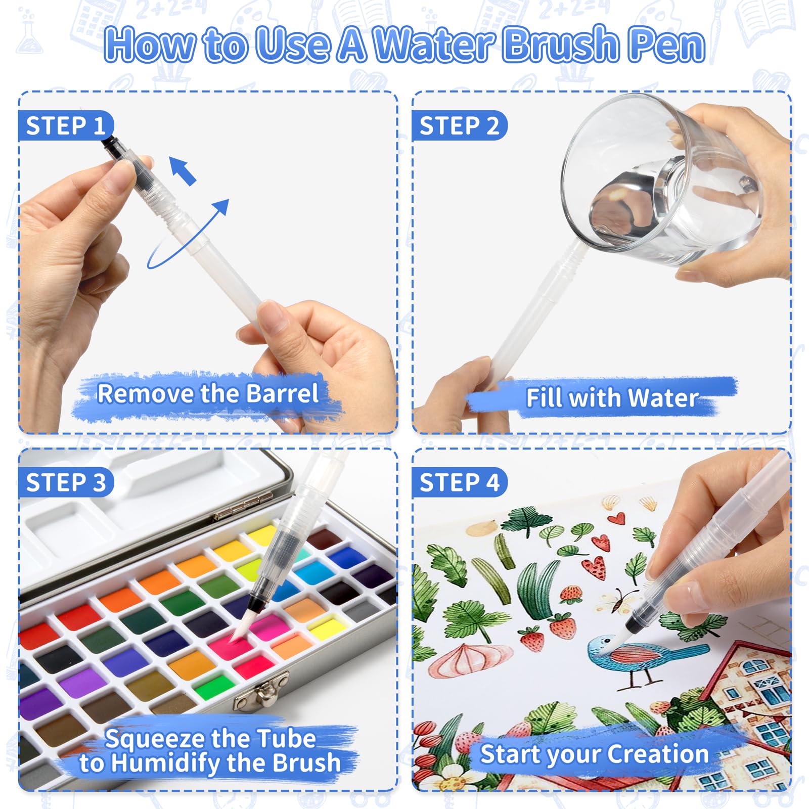 • Portable Travel Water Color Set: All in one portable storage case.This lightweight watercolor kit Is also suitable as a travel watercolor paint set.This set of watercolors is easy to store and carry around, allowing you to paint at home or while traveling. A must have watercolor paints to add to your art supplies, make your watercolor art come to life.